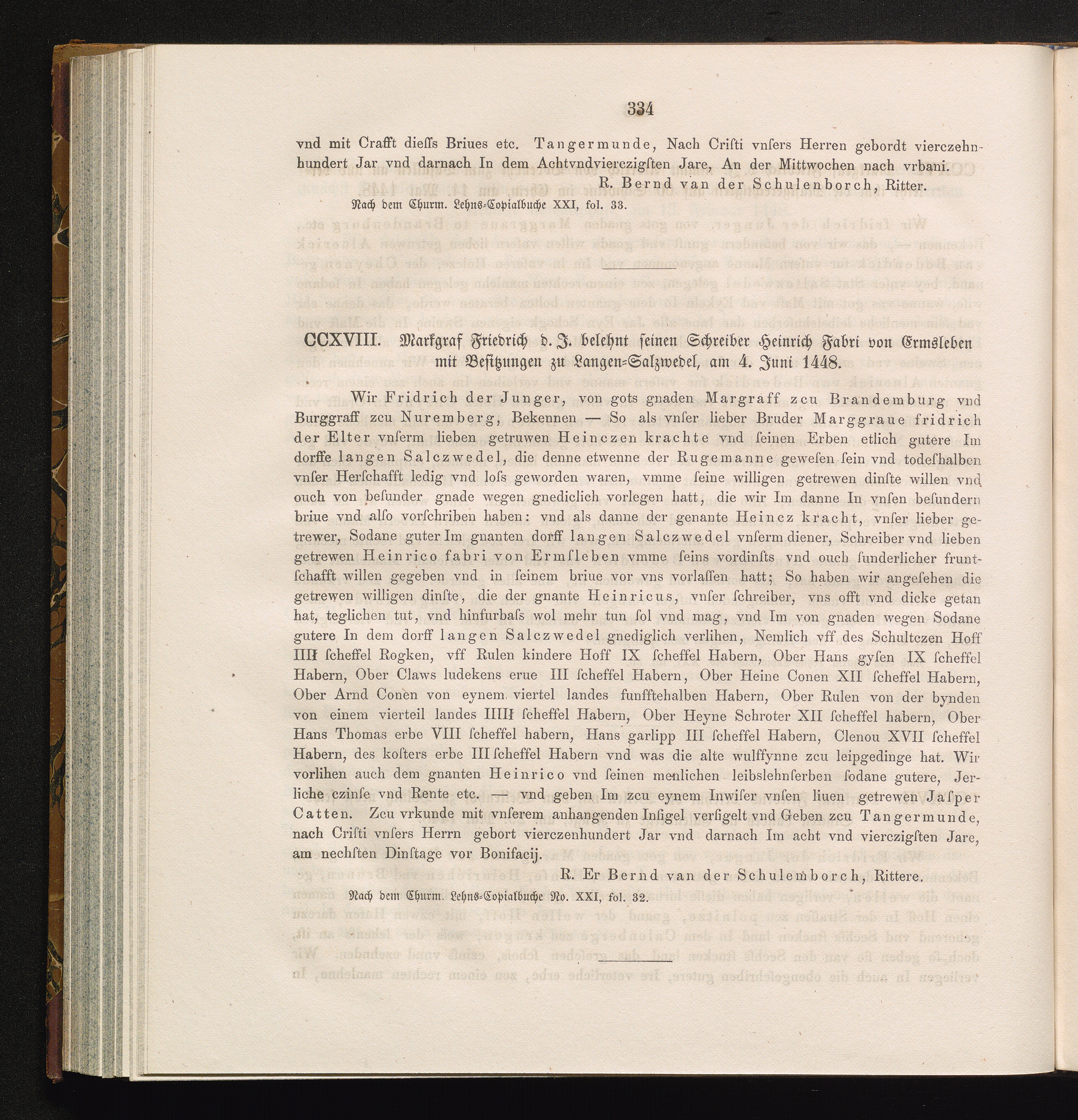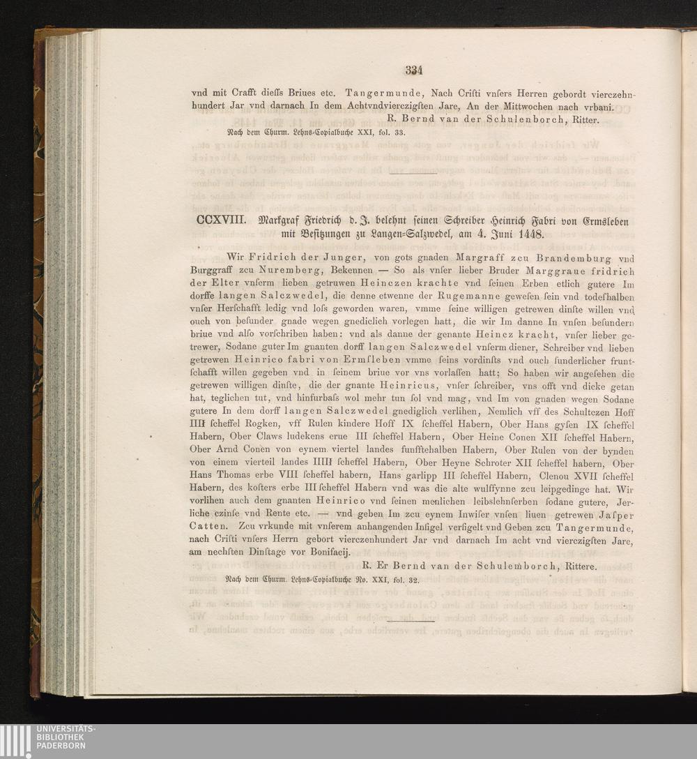 CCXVIII. Markgraf Friedrich d. J. belehnt seinen Schreiber Heinrich Fabri von Emsleben[...]