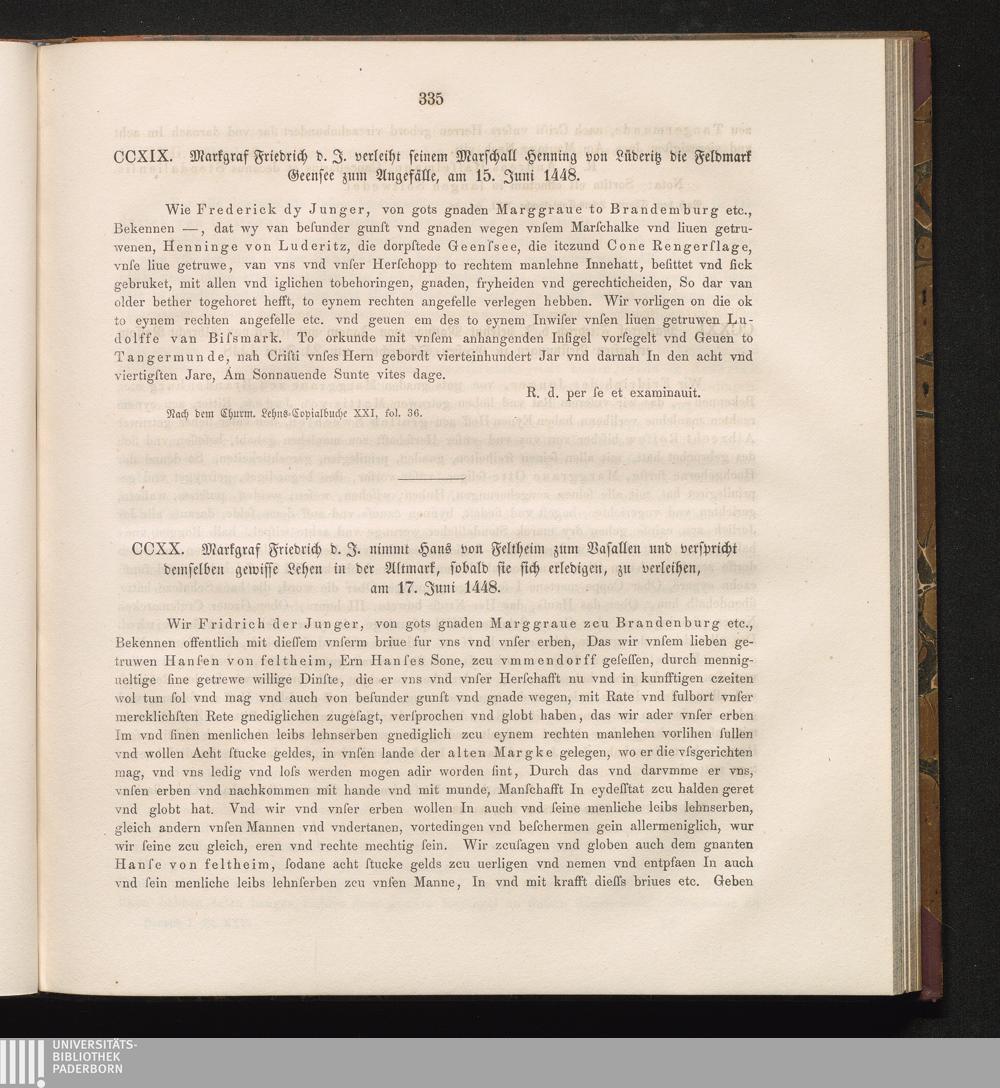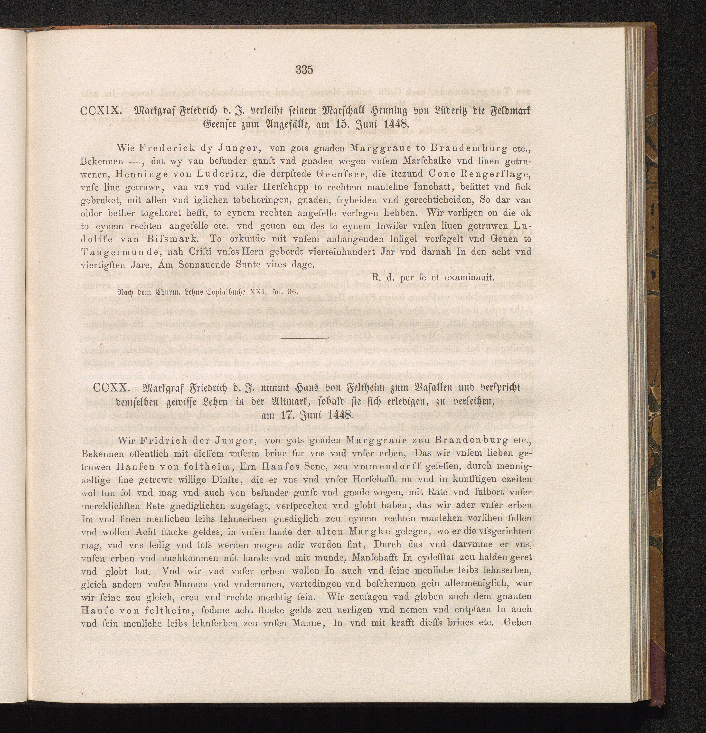 CCXIX. Markgraf Friedrich d. J. verleiht seinem Marschall Henning von Lüderitz die[...]