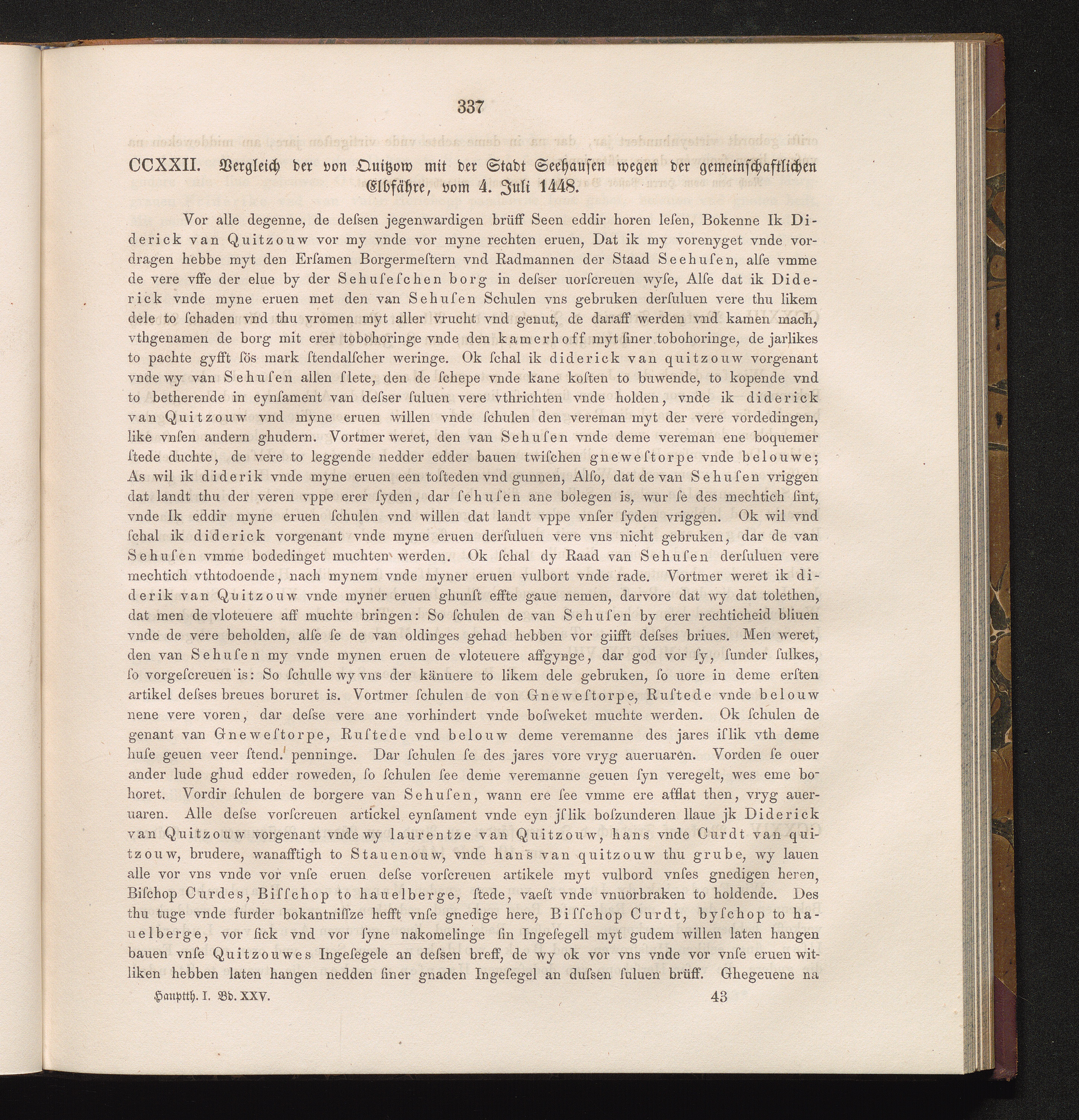 CCXXII. Vergleich der von Quitzow mit der Stadt Seehausen wegen der gemeinschaftlichen[...]
