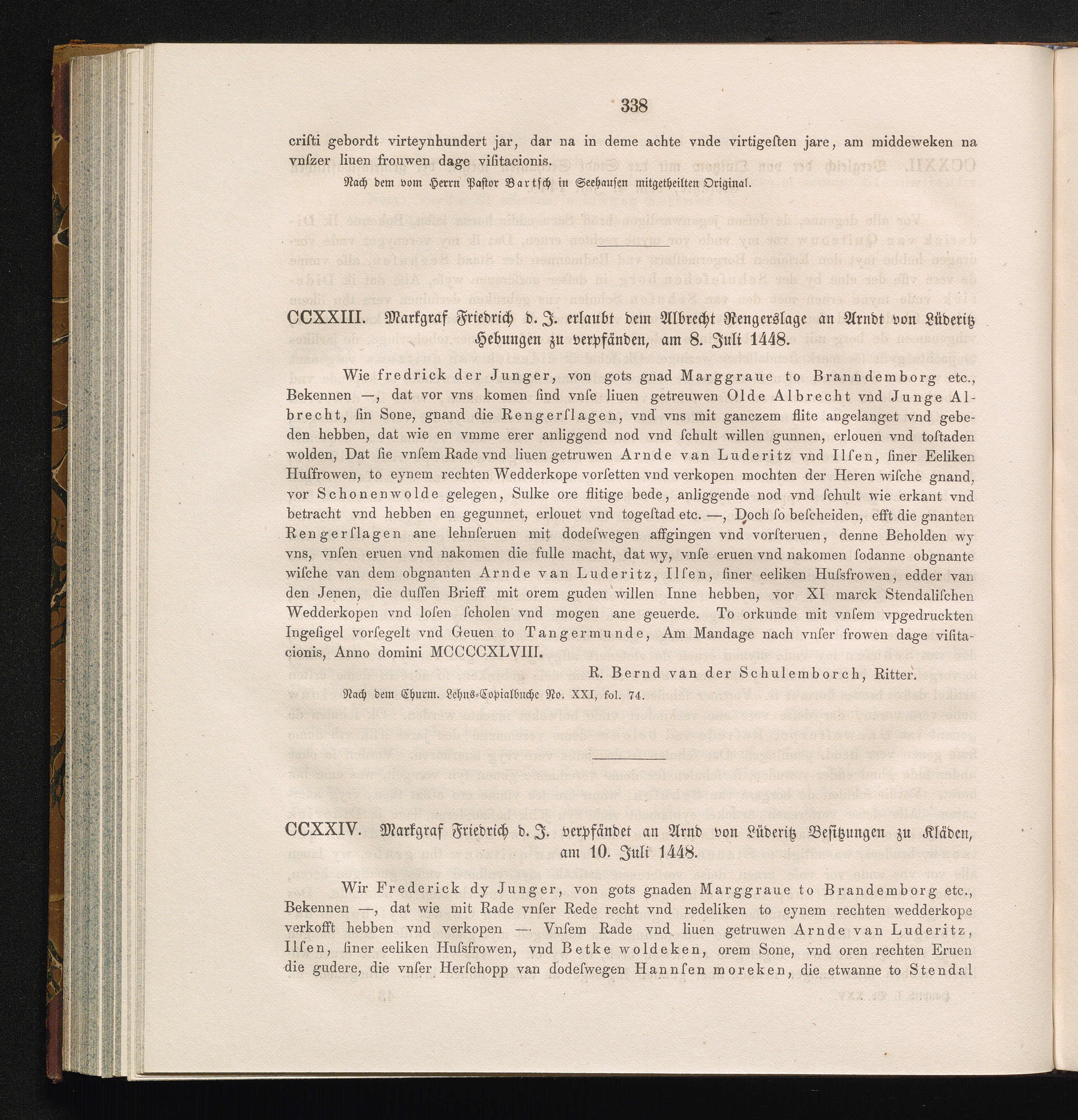 CCXXIII. Markgraf Friedrich d. J. erlaubt dem Albrecht Rengerslage an Arndt von Lüderitz[...]