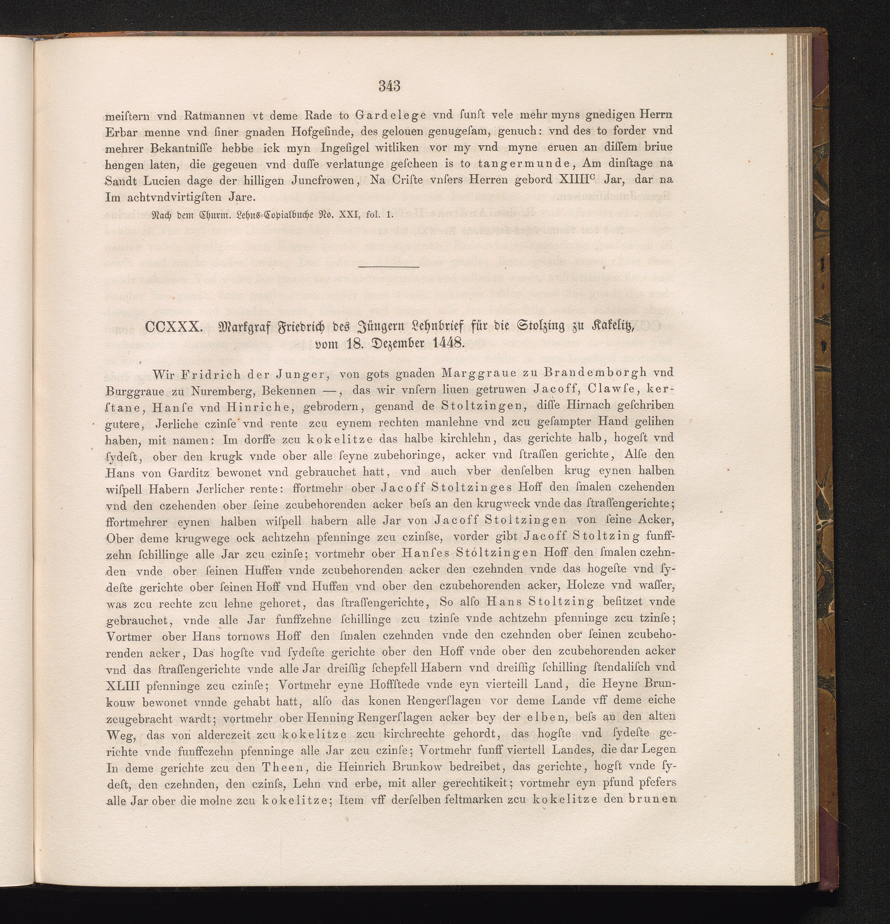 CCXXX. Markgraf Friedrich des Jüngern Lehnbrief für die Stolzing zu Kakelitz, vom[...]