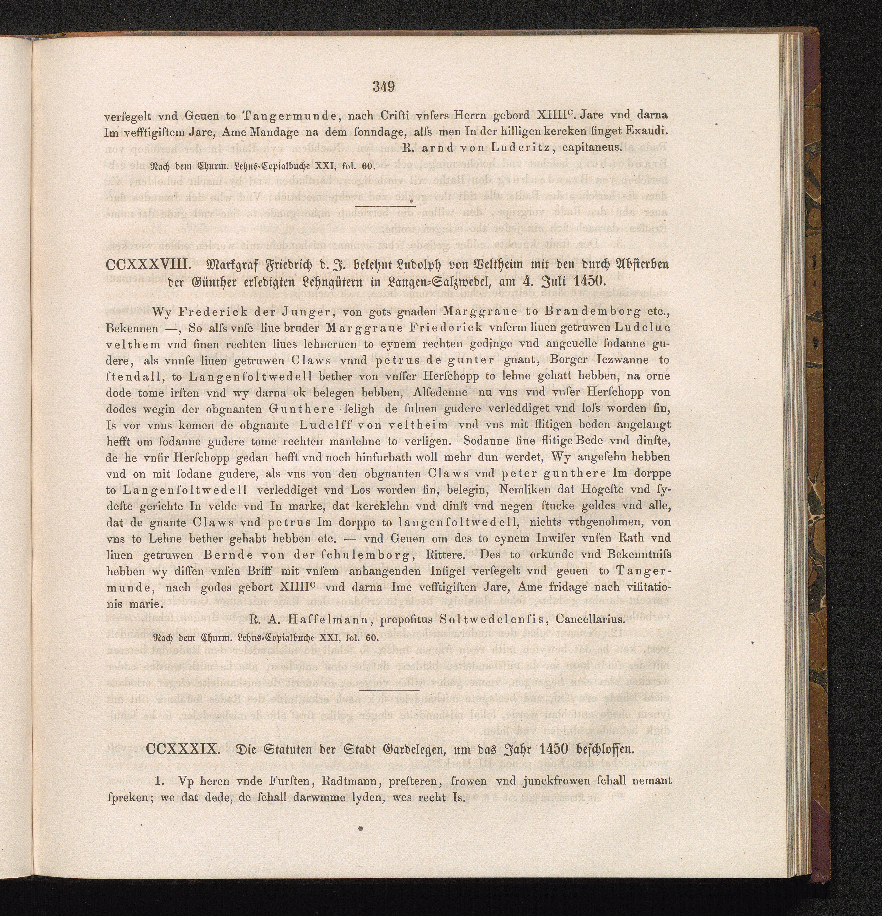 CCXXXVIII. Markgraf Friedrich d. J. belehnt Ludolph von Veltheim mit den durch Absterben[...]