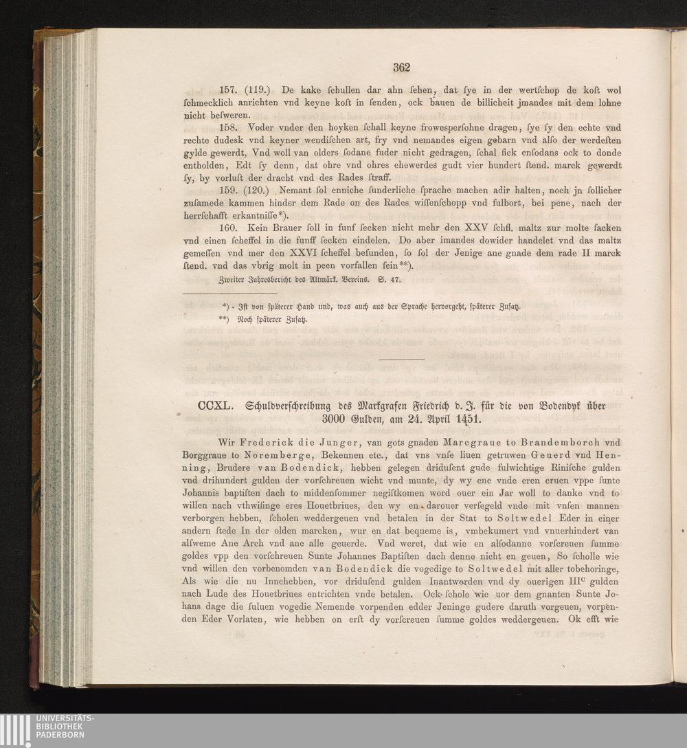 CCXL. Schuldverschreibung des Markgrafen Friedrich d. J. für die von Bodendyk über[...]