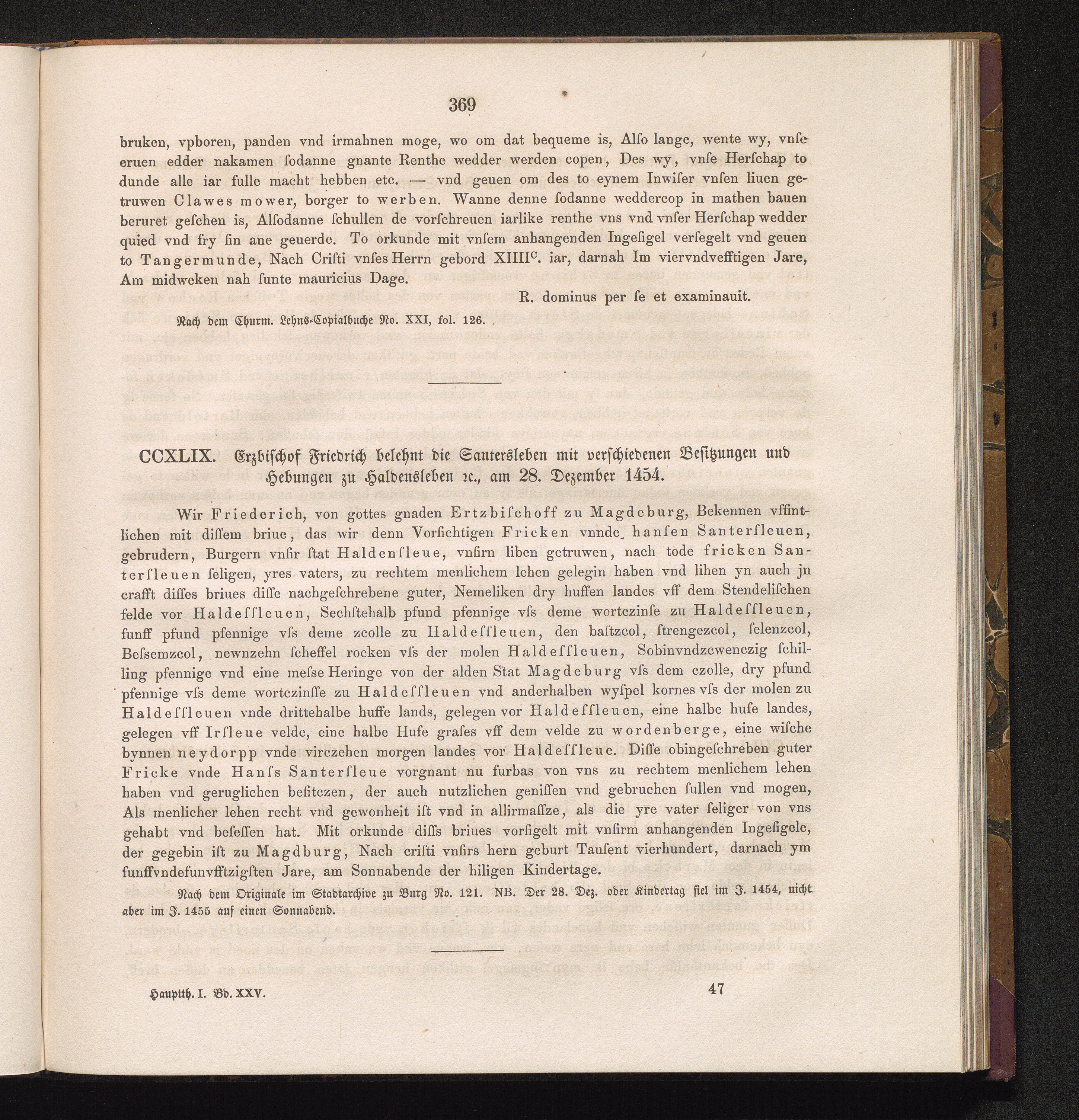 CCXLIX. Erzbischof Friedrich belehnt die Santersleben mit verschiedenen Besitzungen[...]