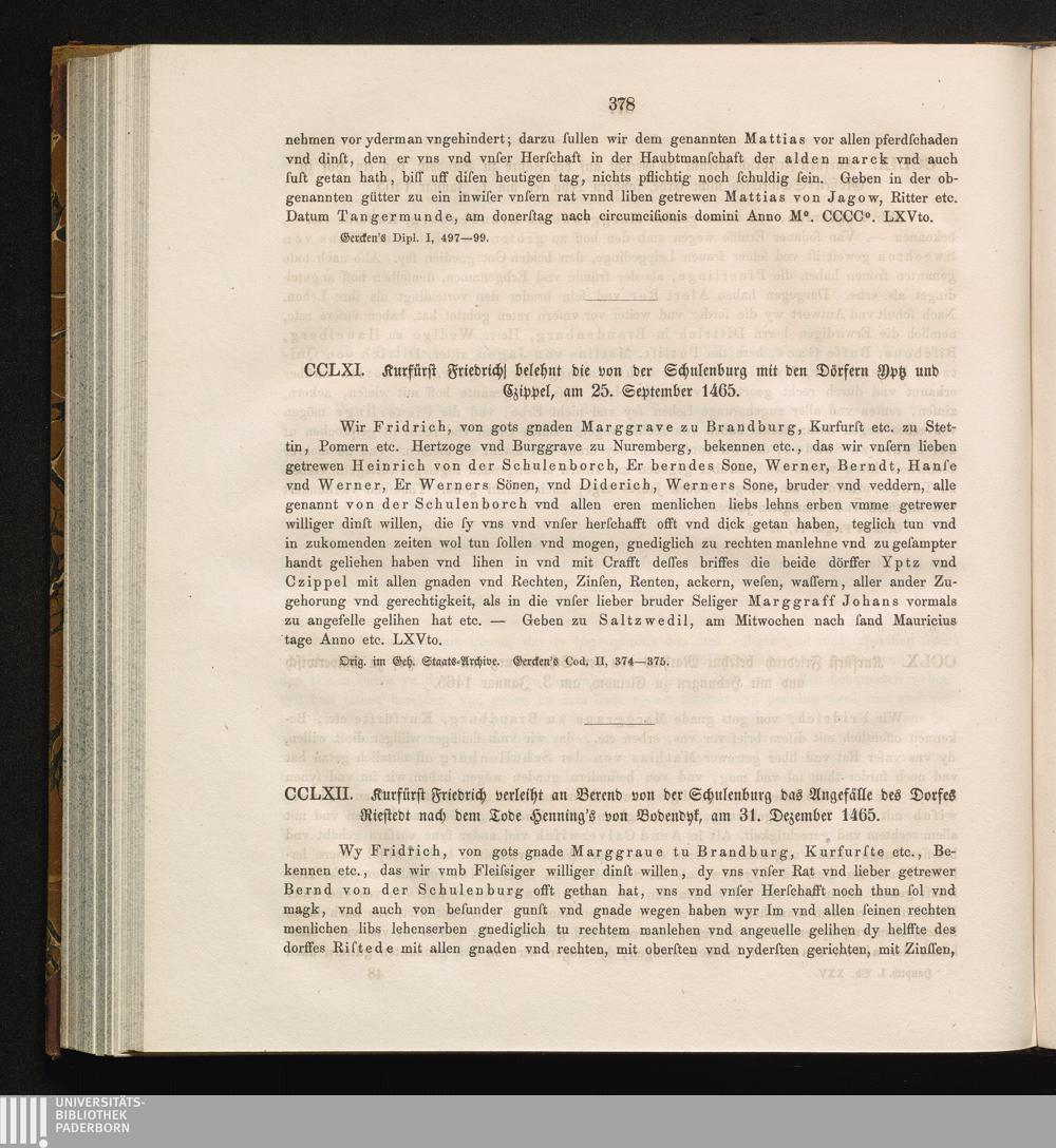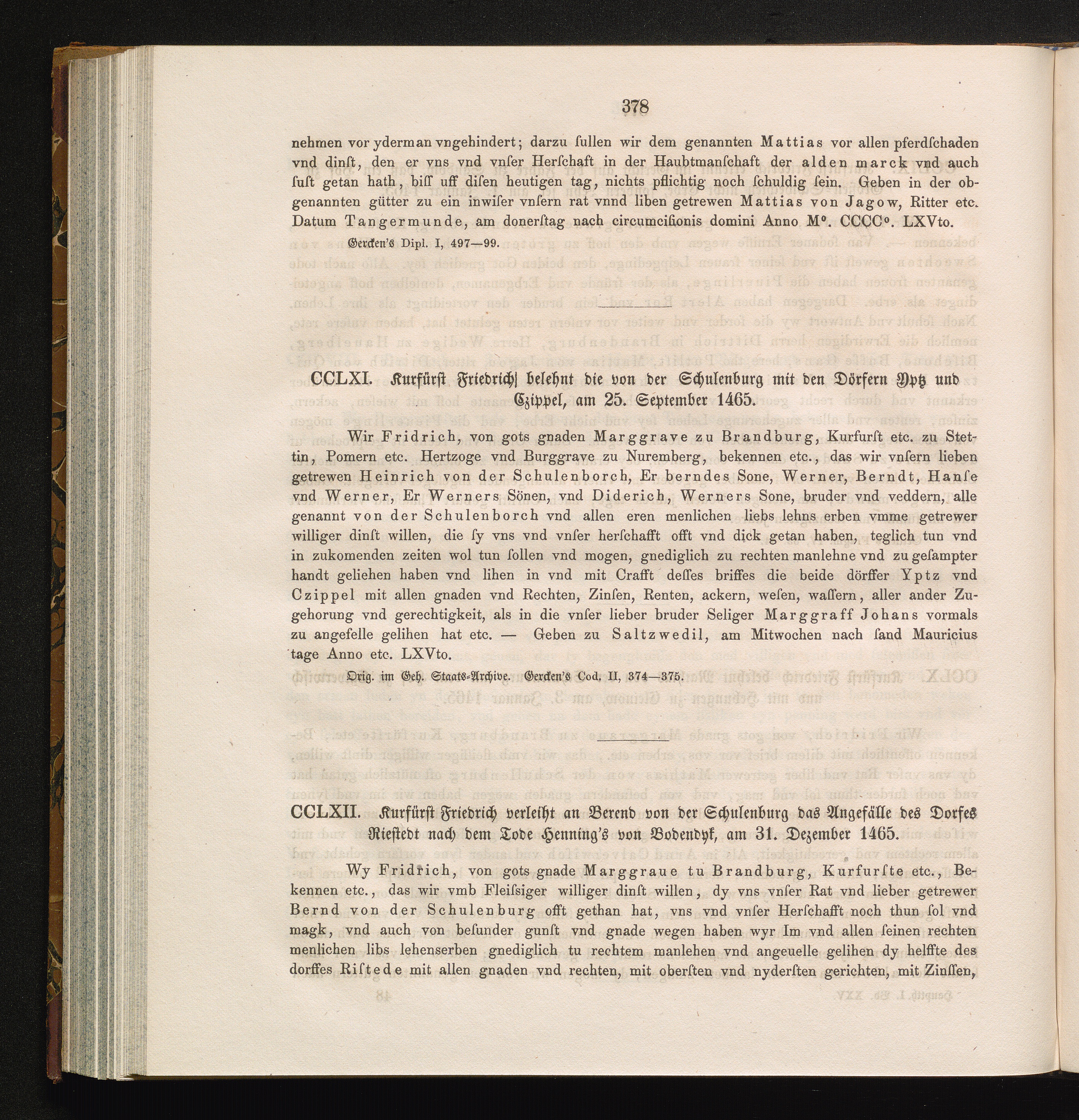 CCLXI. Kurfürst Friedrich belehnt die von der Schulenburg mit den Dörfern Yptz und[...]
