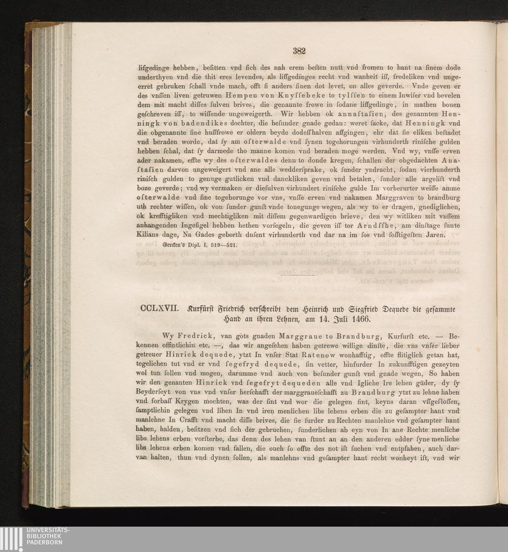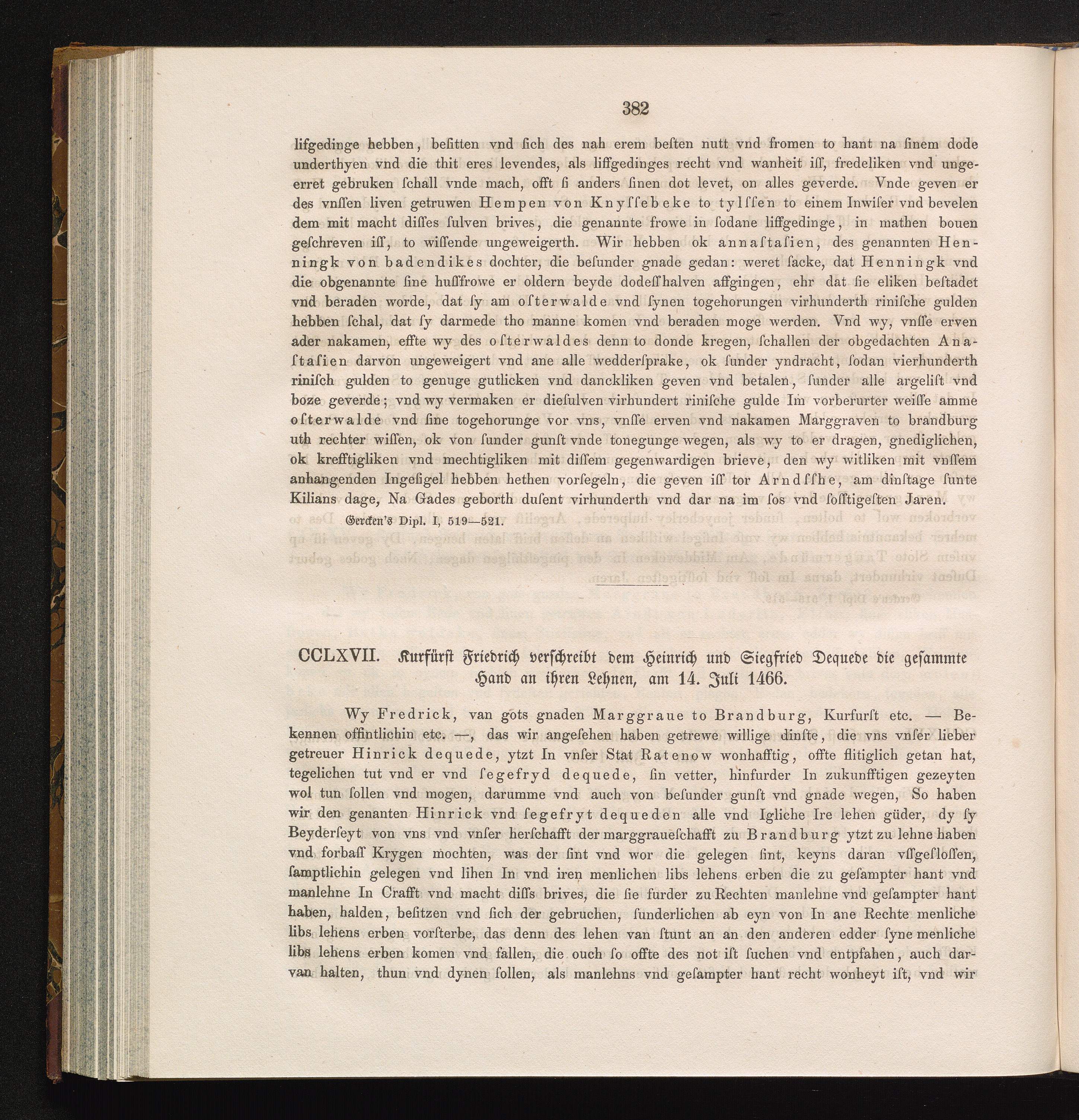 CCLXVII. Kurfürst Friedrich verschreibt dem Heinrich und Siegfried Dequede die gesammte[...]