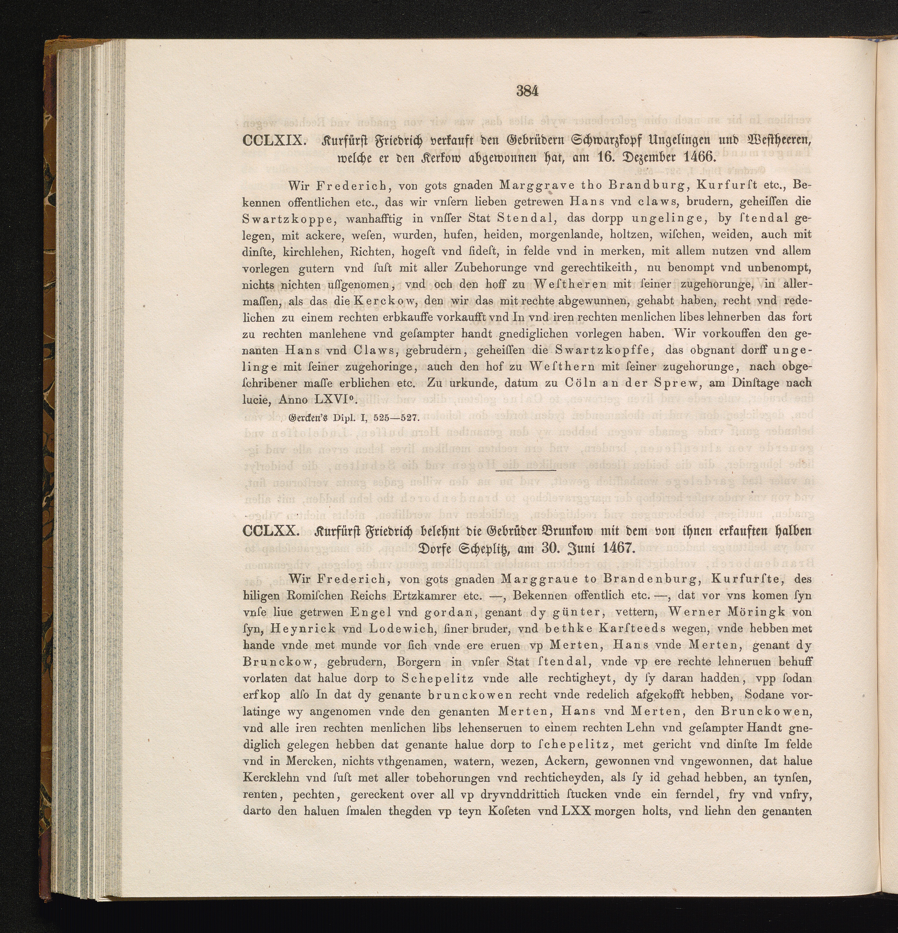 CCLXIX. Kurfürst Friedrich verkauft den Gebrüdern Schwarzkopf Ungelingen und Westheeren,[...]