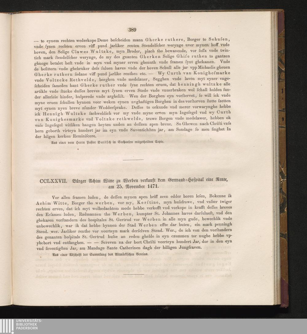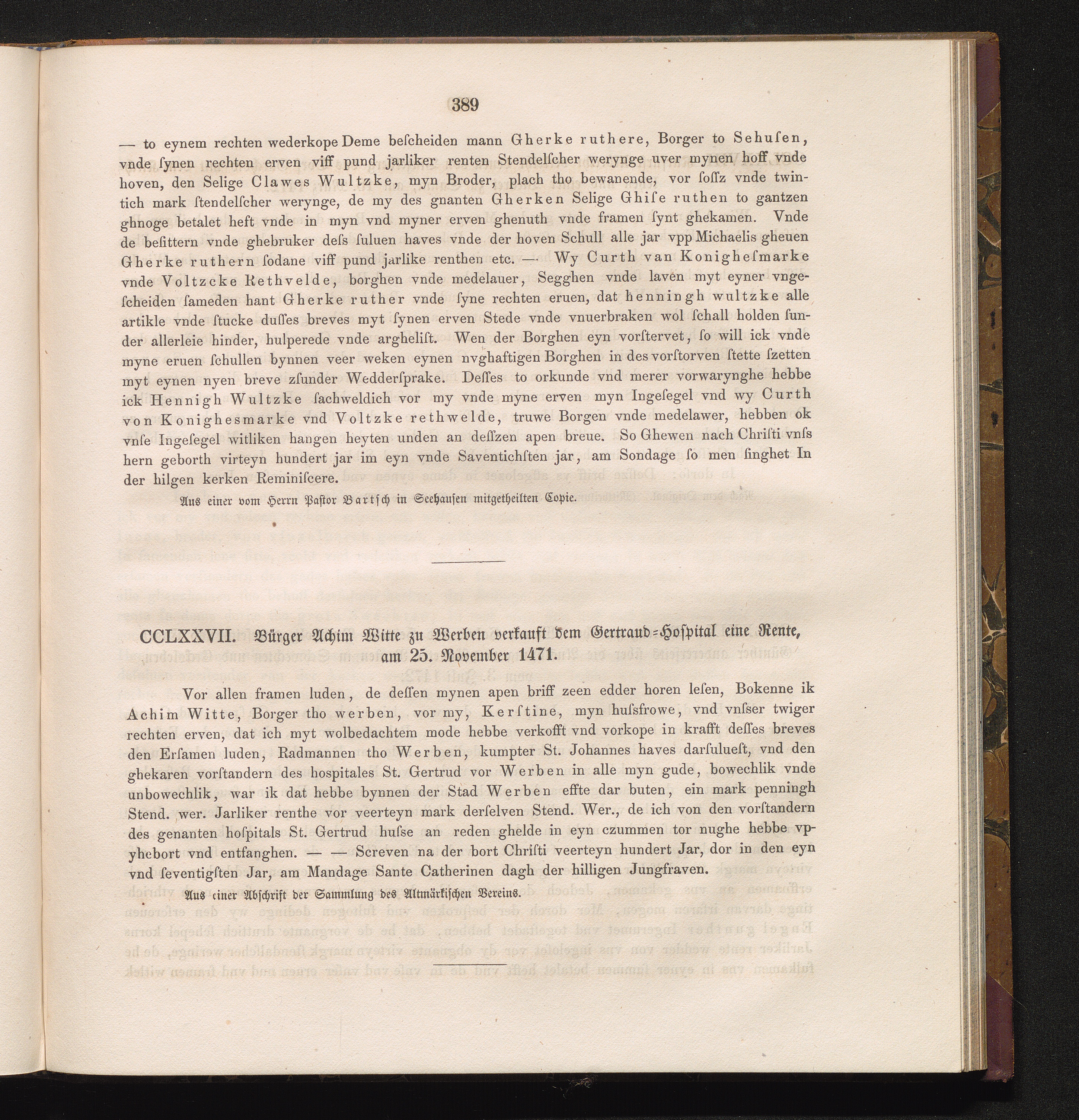 CCLXXVII. Bürger Achim Witte zu Werben verkauft dem Gertraud-Hospital eine Rente,[...]