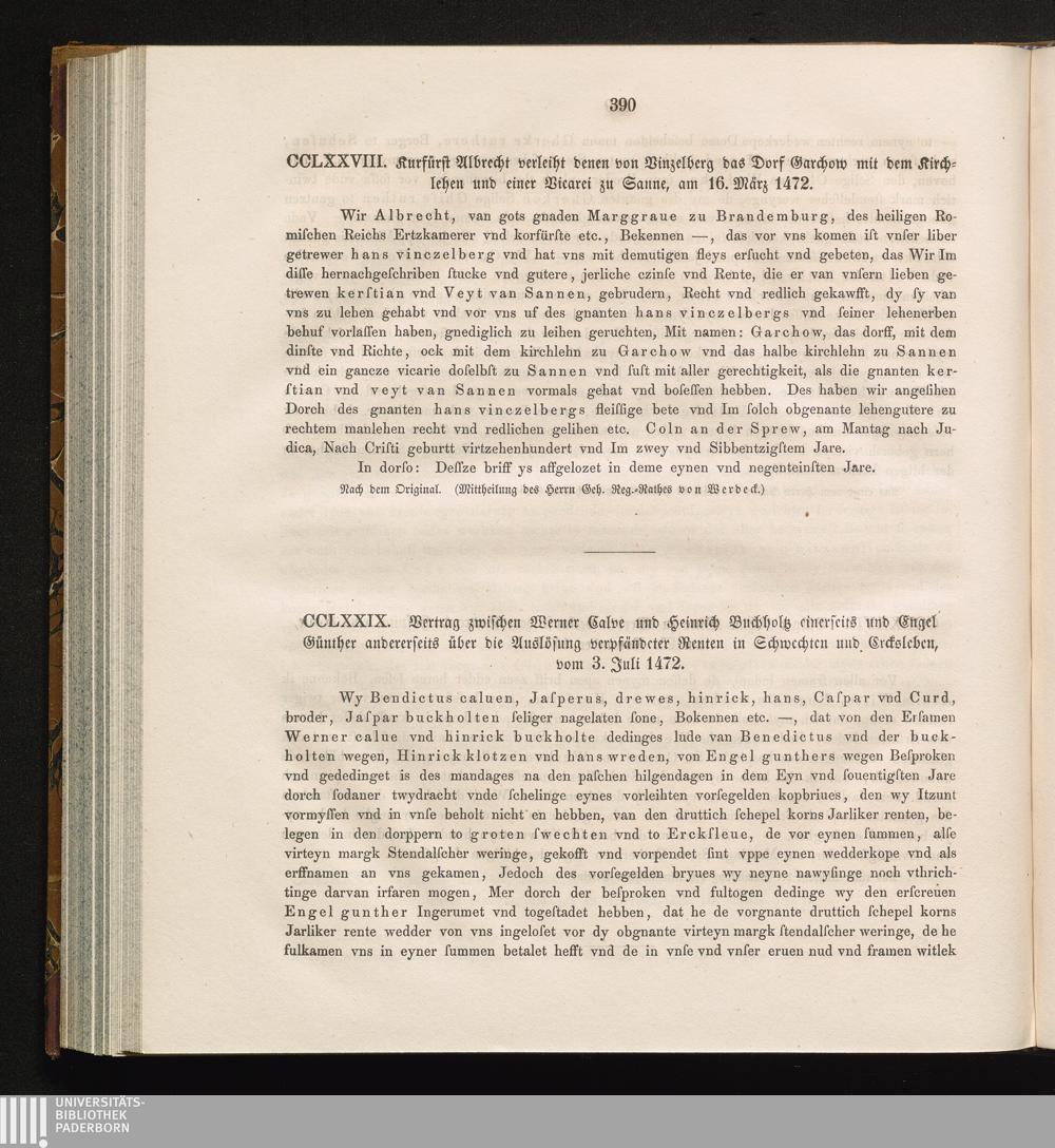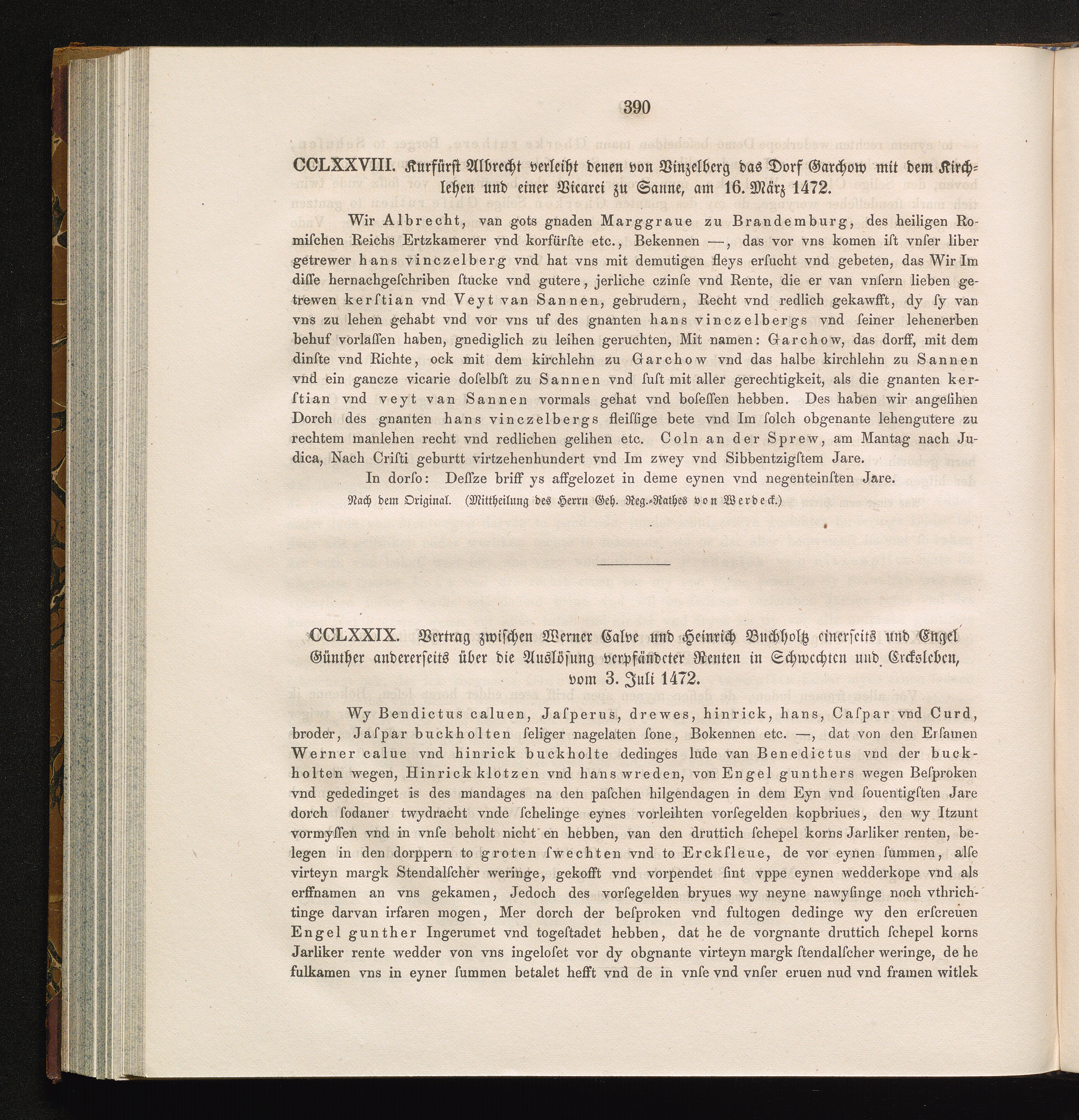 CCLXXVIII. Kurfürst Albrecht verleiht denen von Vinzelberg das Dorf Garchow mit dem[...]