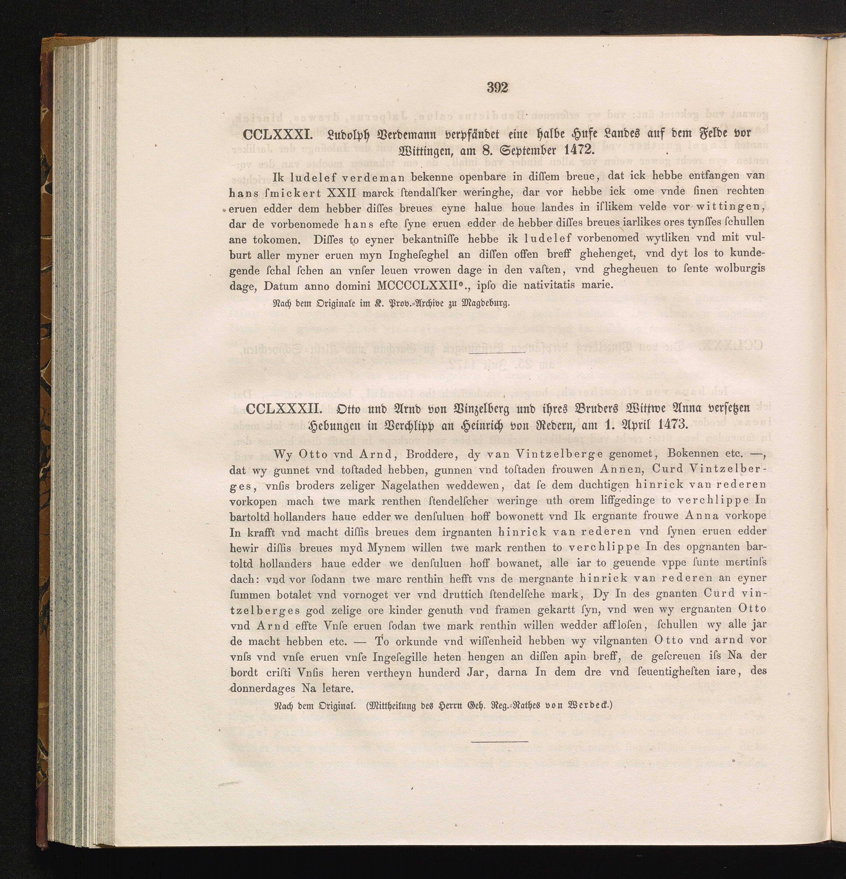 CCLXXXI. Ludolph Verdemann verpfändet eine halbe Hufe Landes auf dem Felde vor Wittingen,[...]