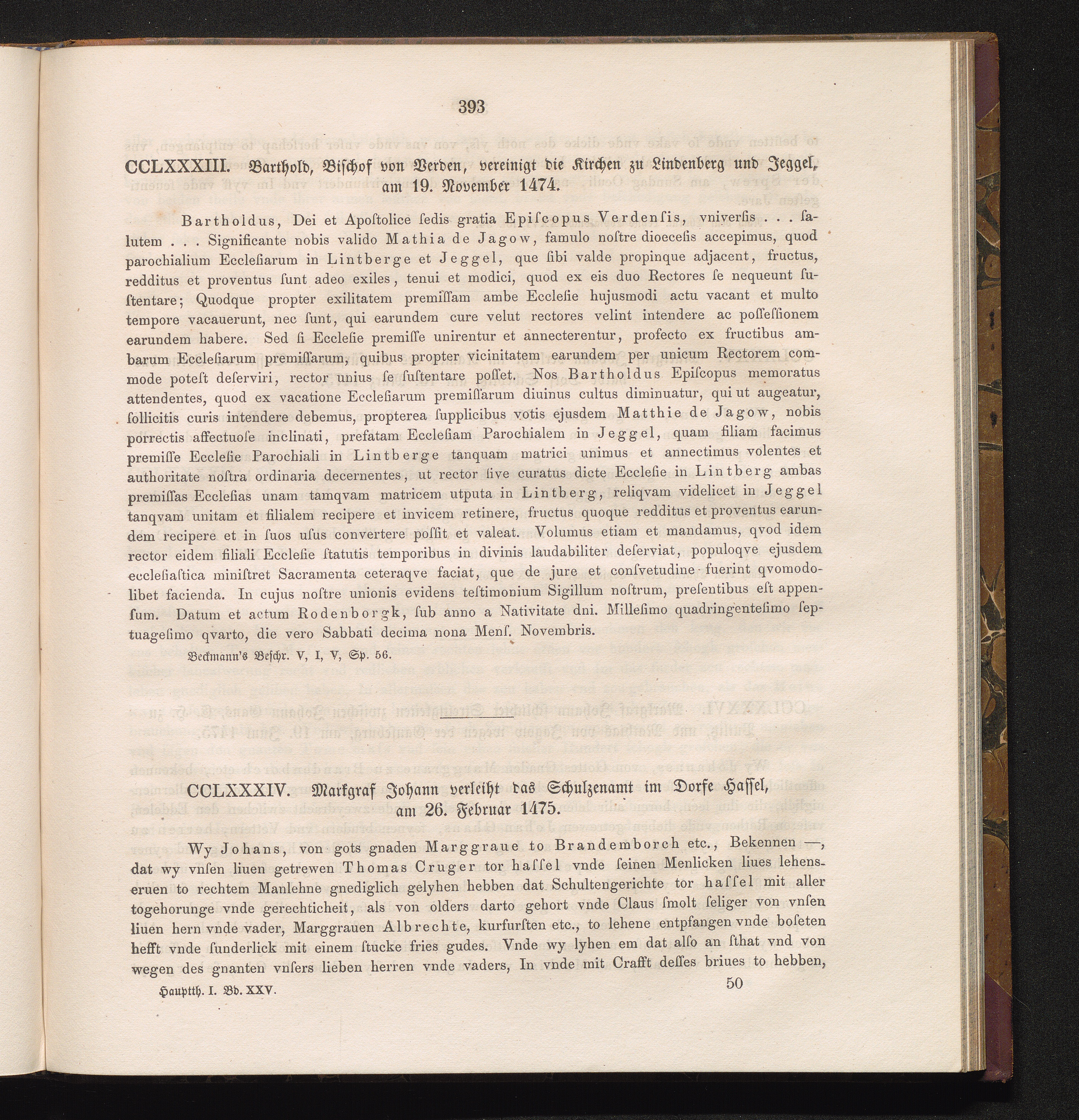 CCLXXXIII. Barthold, Bischof von Verden, vereinigt die Kirchen zu Lindenberg und[...]