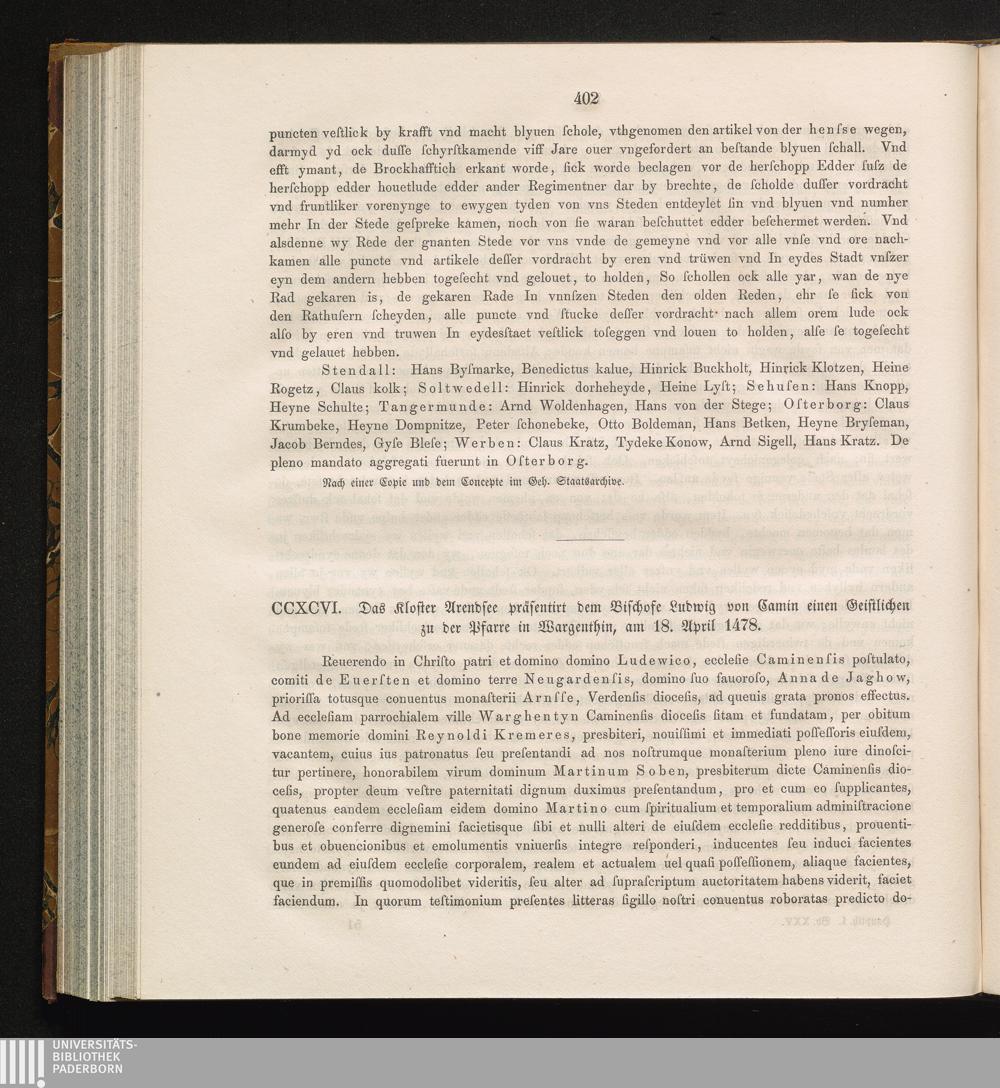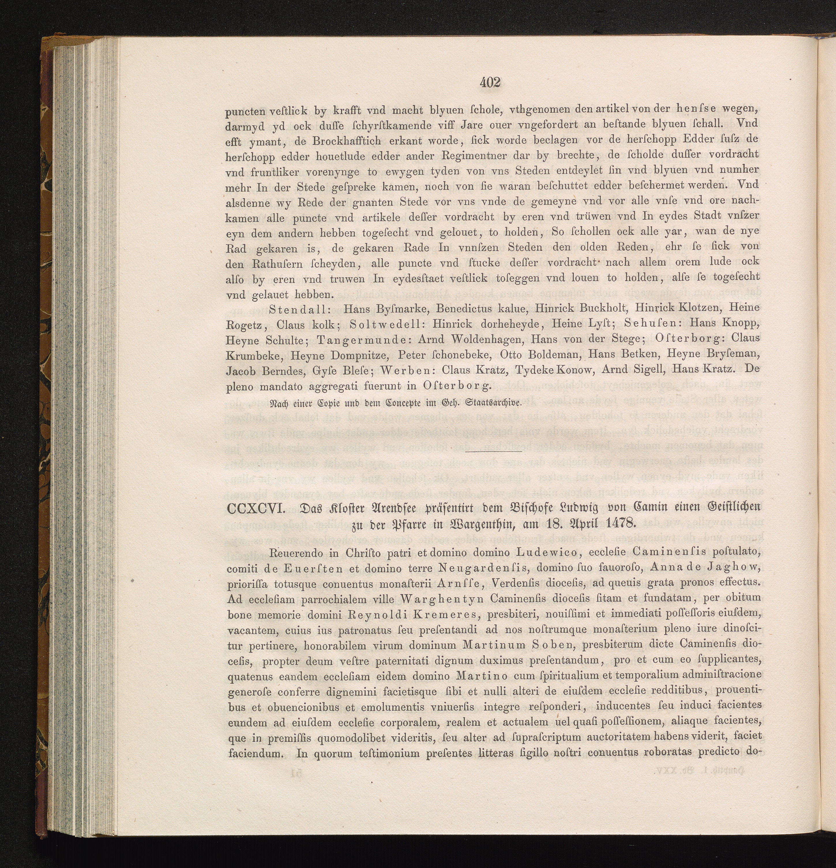 CCXCVI. Das Kloster Arendsee präsentirt dem Bischofe Ludwig von Camin einen Geistlichen[...]