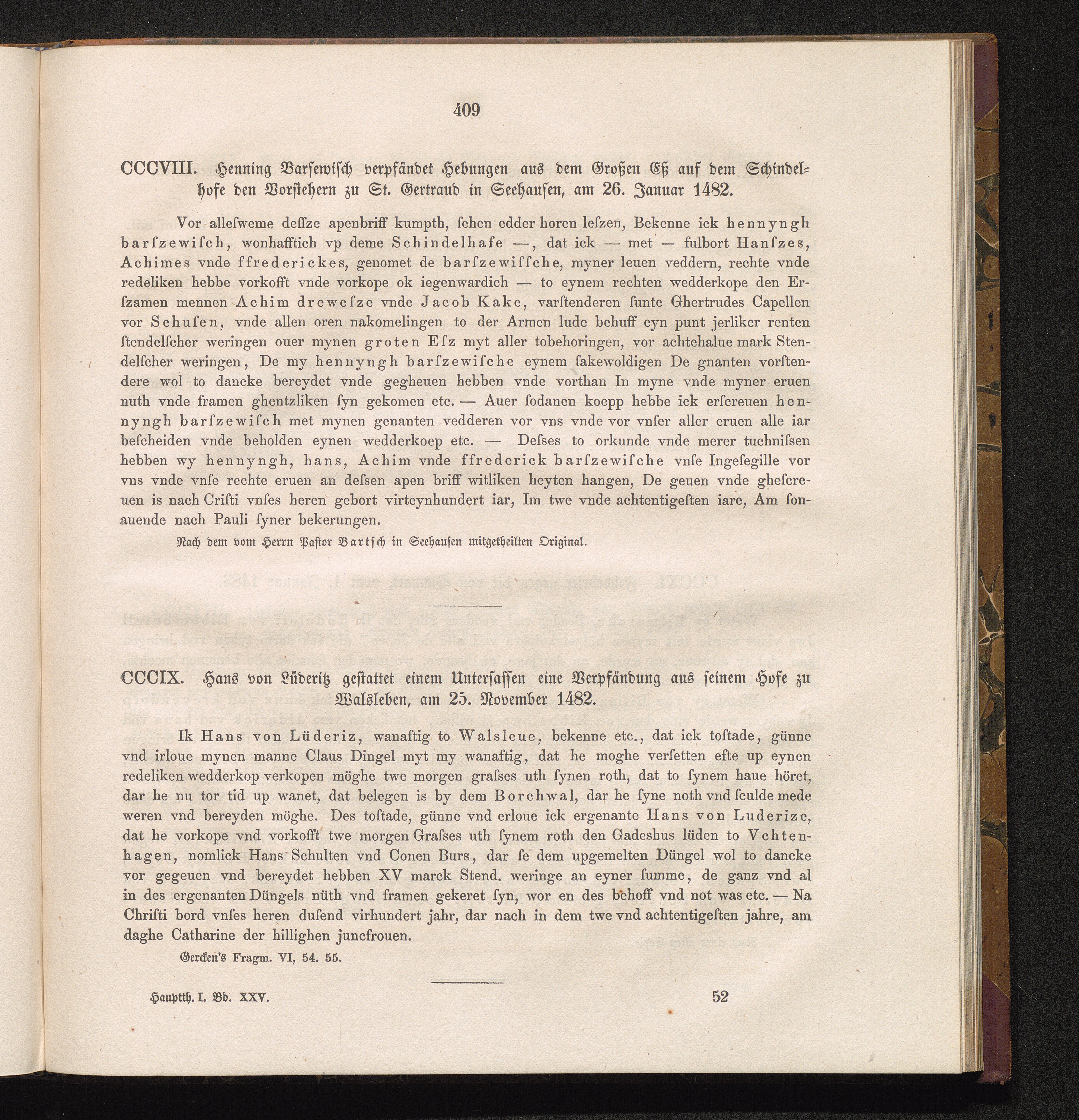 CCCVIII. Henning Barsewisch verpfändet Hebungen aus dem Großen Eß auf dem Schindelhofe[...]
