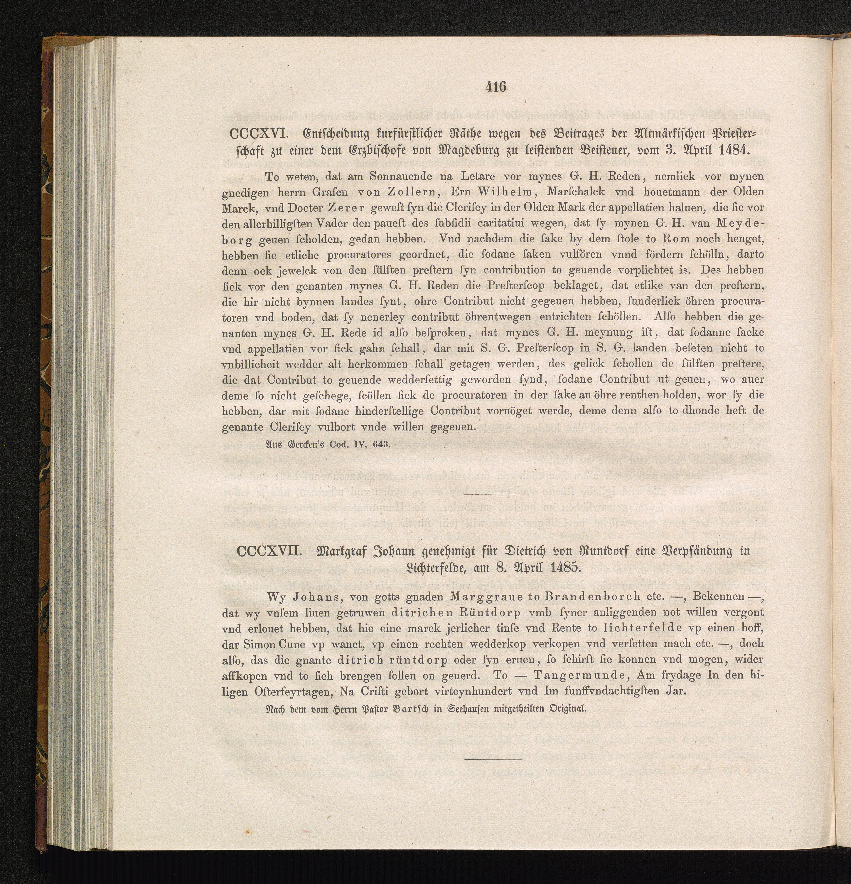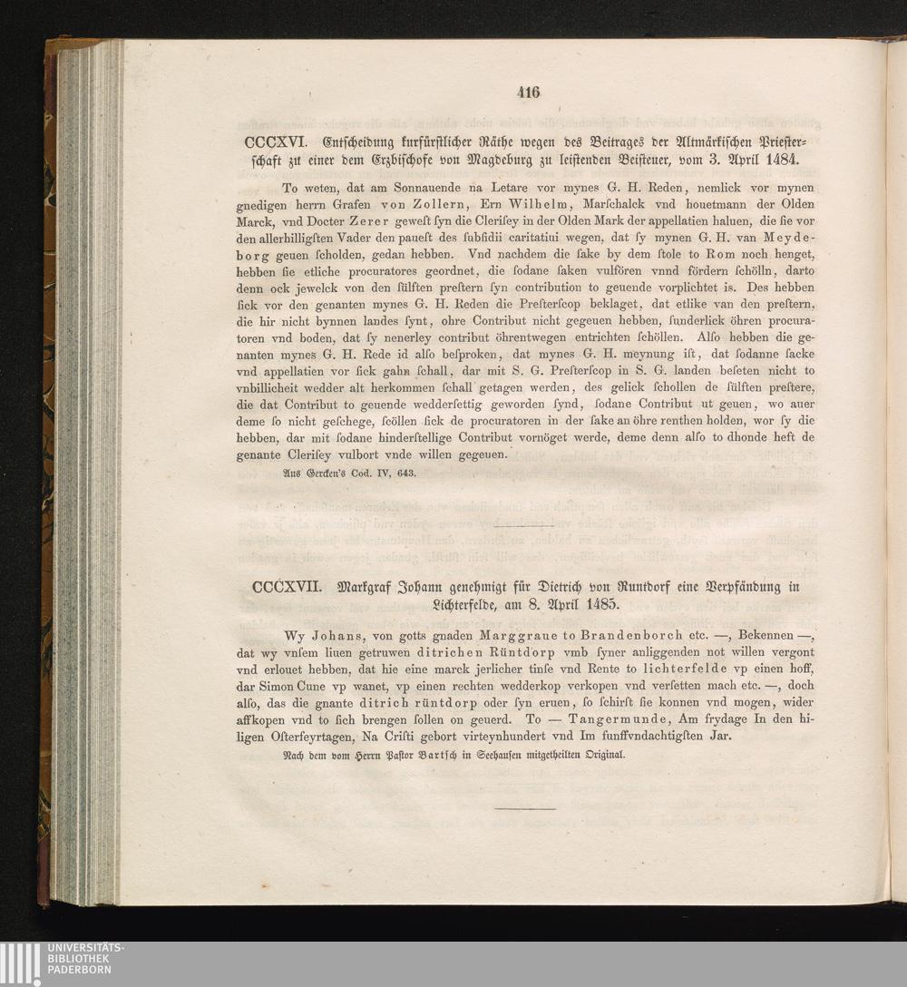 CCCXVI. Entscheidung kurfürstlicher Räthe wegen des Beitrages der Altmärkischen Priesterschaft[...]