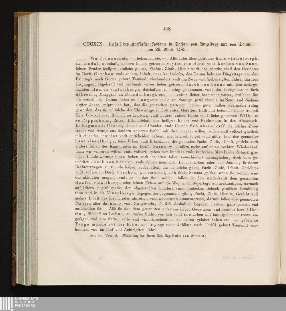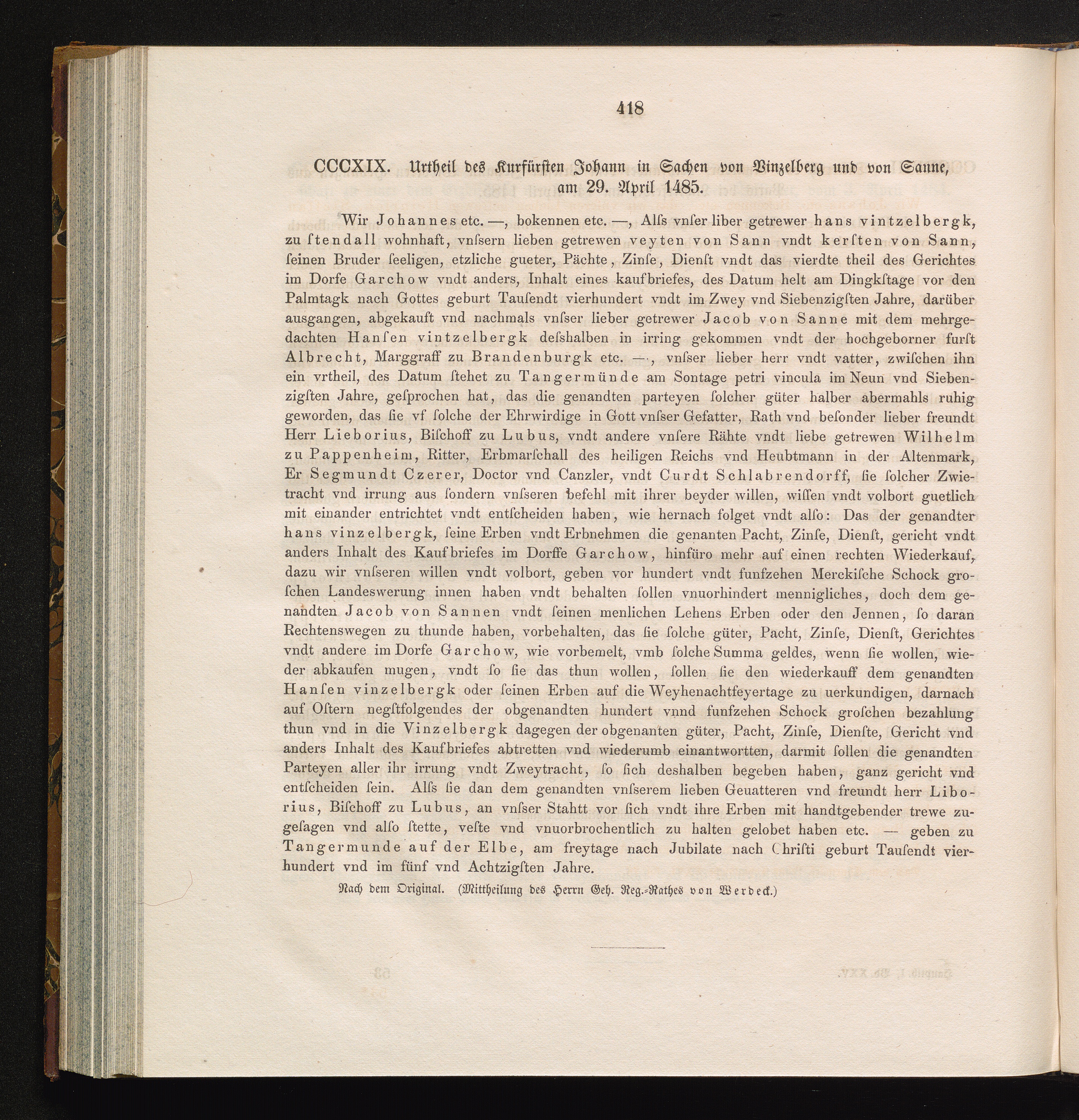 CCCXIX. Utheil des Kurfürsten Johann in Sachen von Vinzelberg und von Sanne, am 29.[...]