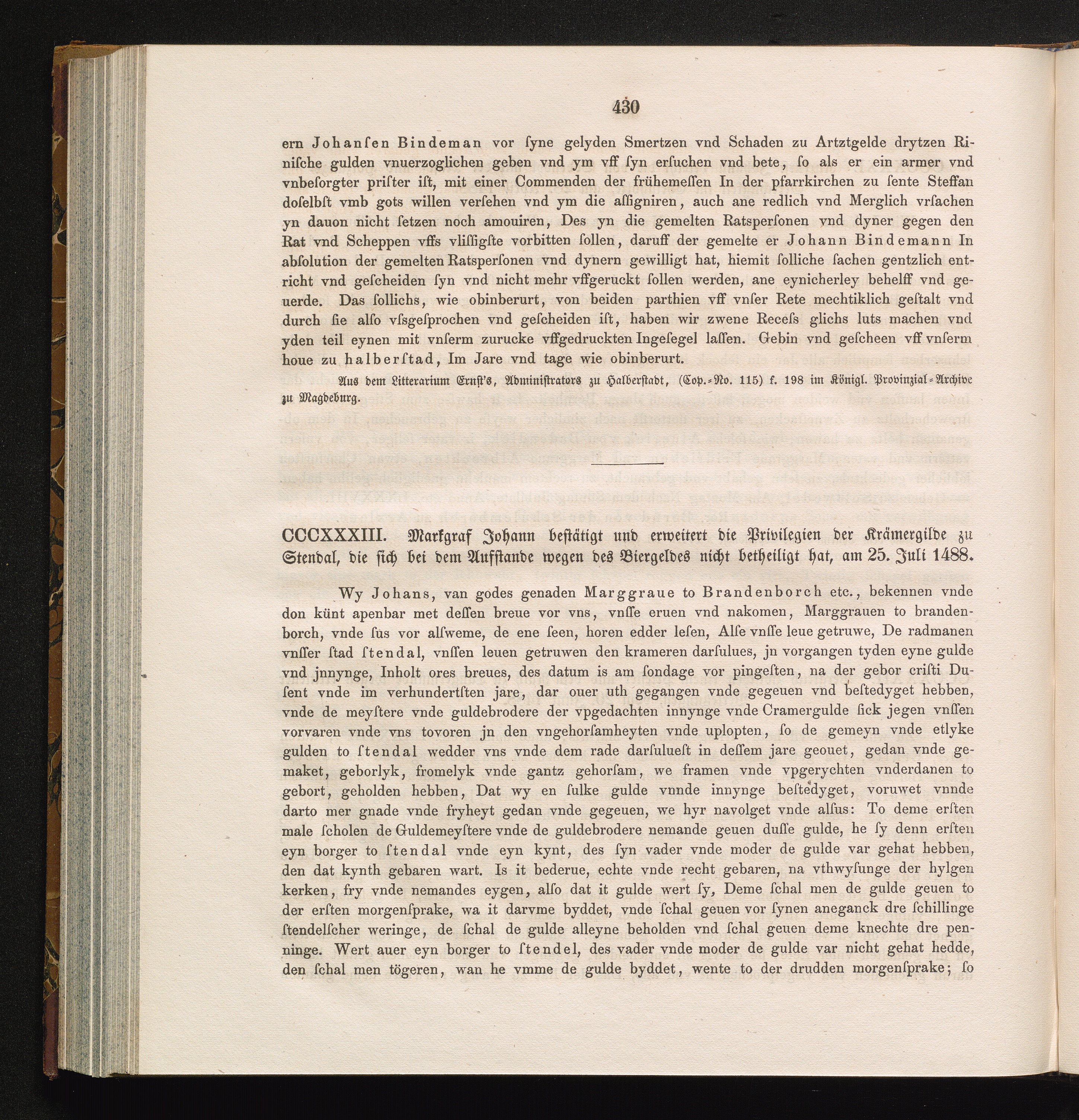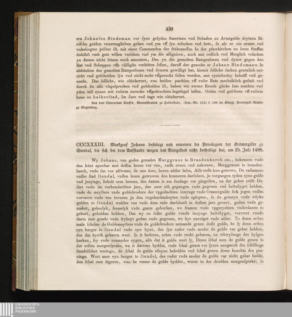 CCCXXXIII. Markgraf Johann bestätigt und erweitert die Privilegien der Krämergilde[...]