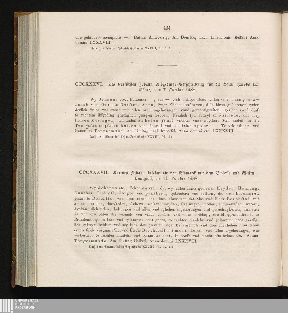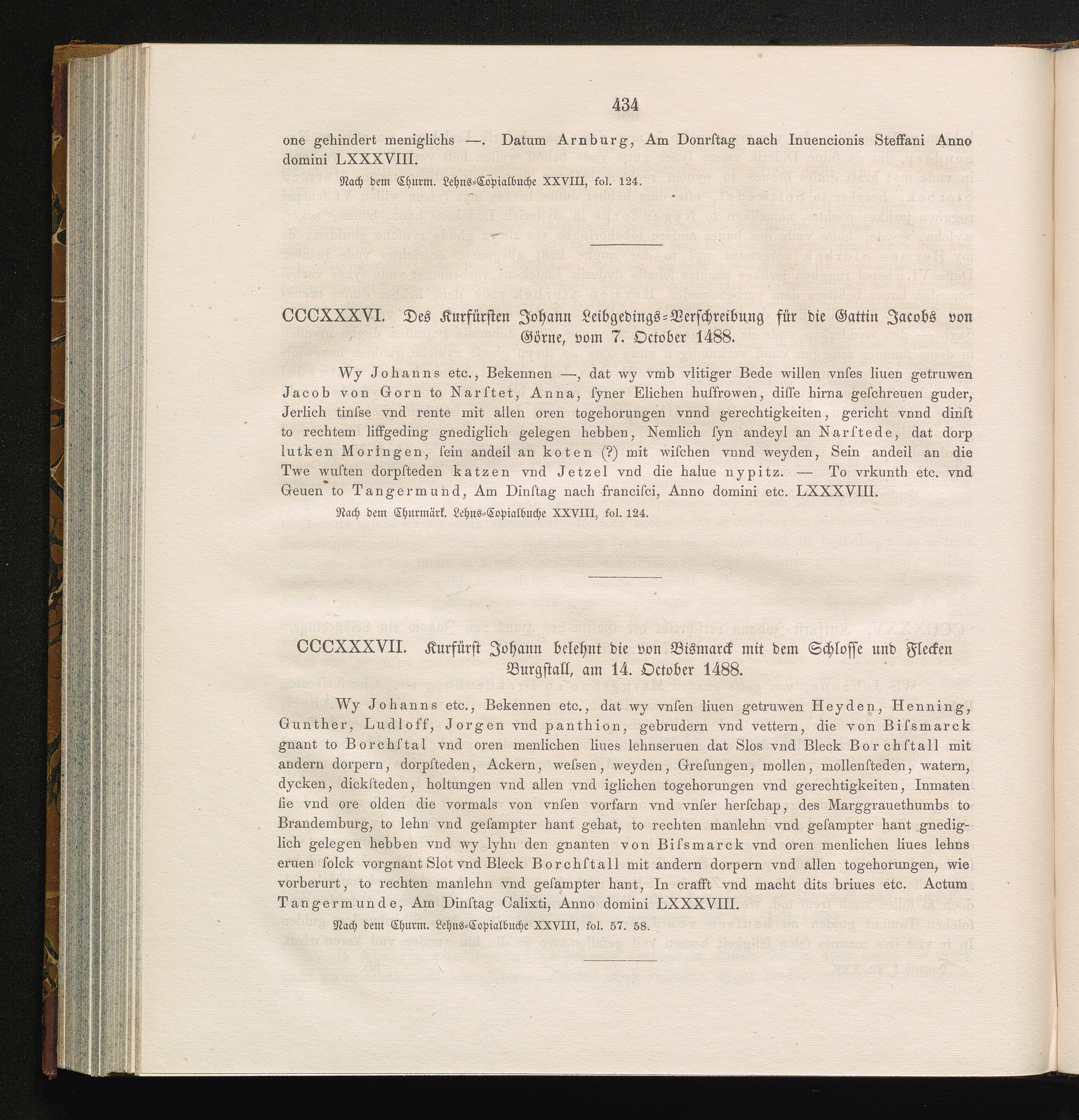 CCCXXXVI. Des Kurfürsten Johann Leibgedings-Verschreibung für die Gattin Jacobs von[...]