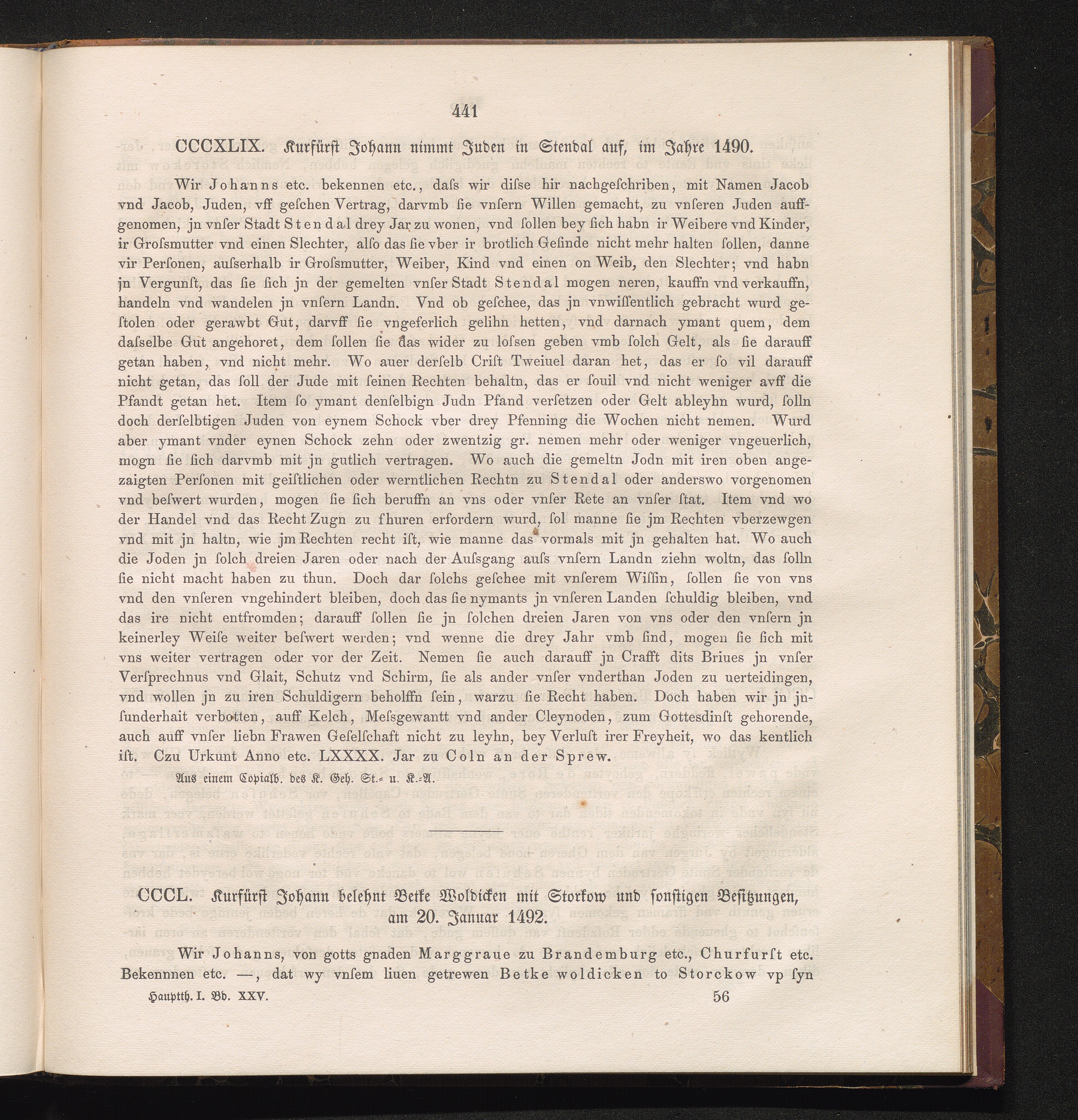 CCCL. Kurfürst Johann belehnt Betke Woldicken mit Storkow und sonstigen Besitzungen,[...]