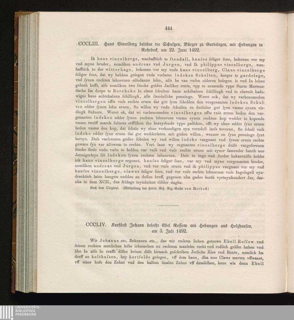 CCCLIII. Hans Vincelberg belehnt die Schultzen, Bürger zu Gardelegen, mit Hebungen[...]