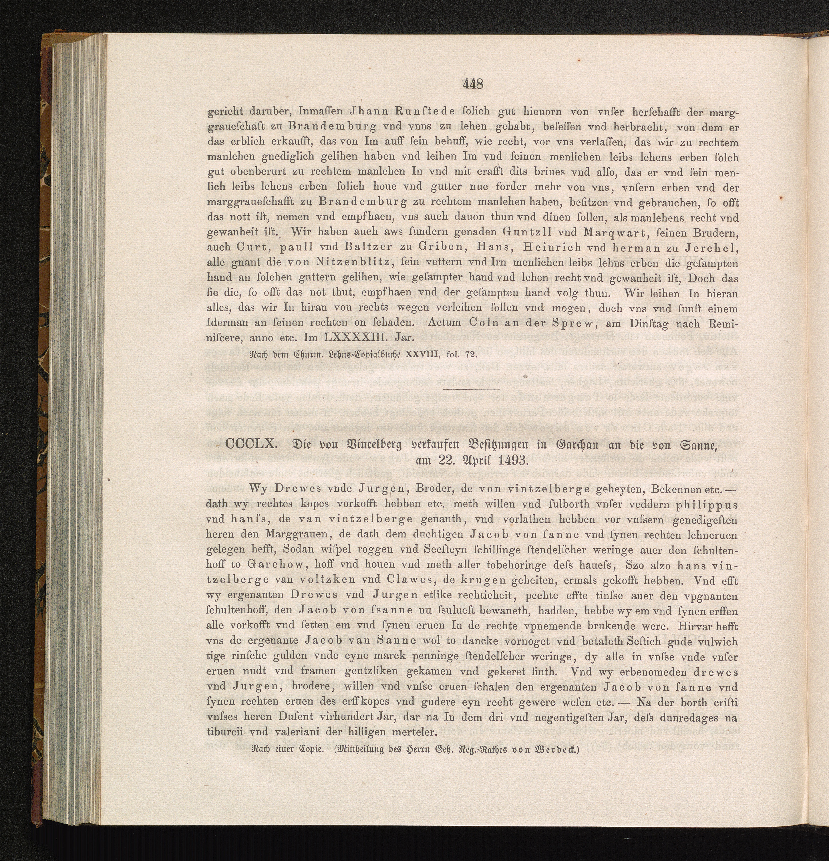 CCCLX. Die von Vincelberg verkaufen Besitzungen in Garchau an die von Sanne, am 22.[...]