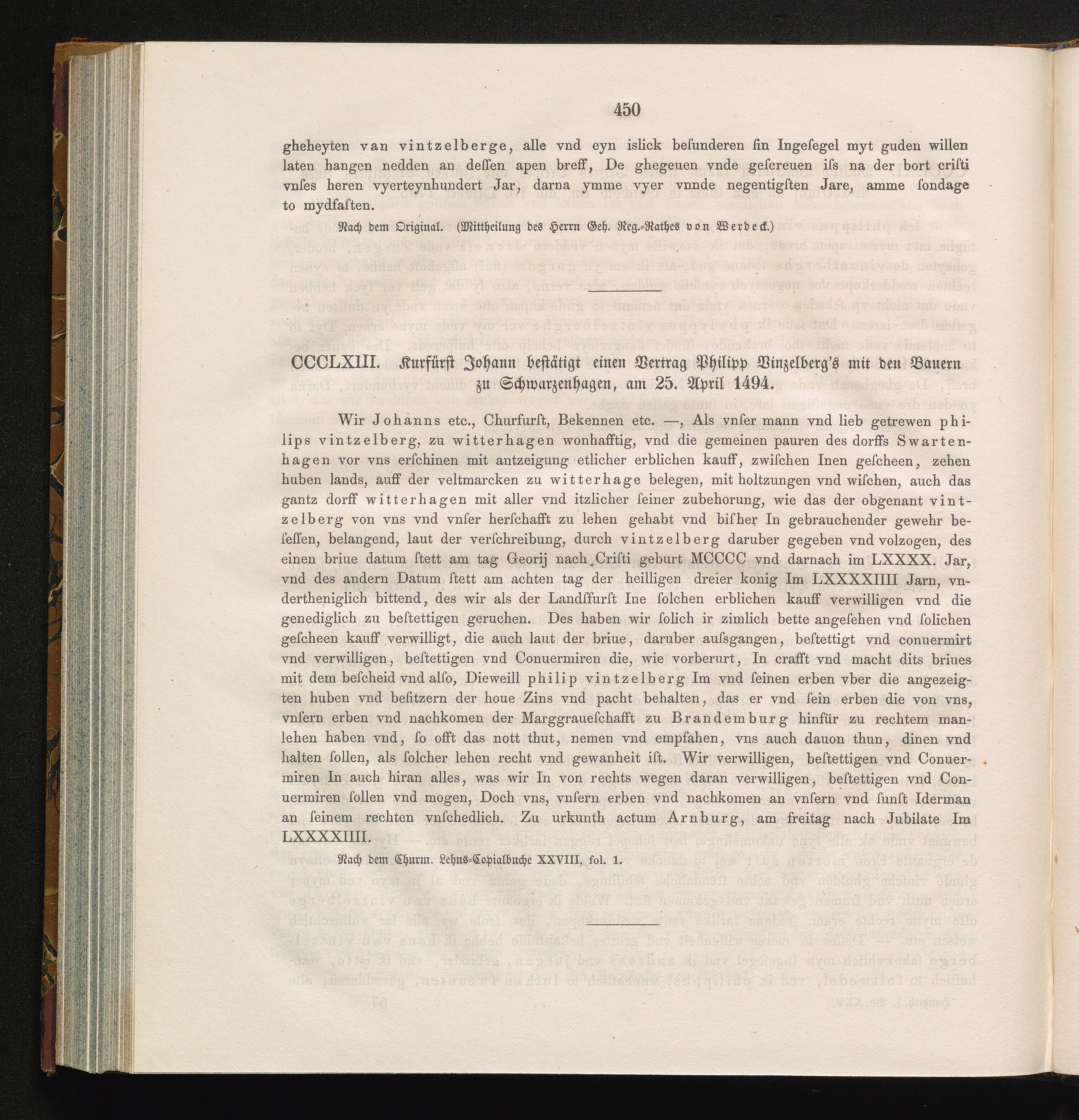 CCCLXIII. Kurfürst Johann bestätigt einen Vertrag Philipp Vinzelberg's mit den Bauern[...]