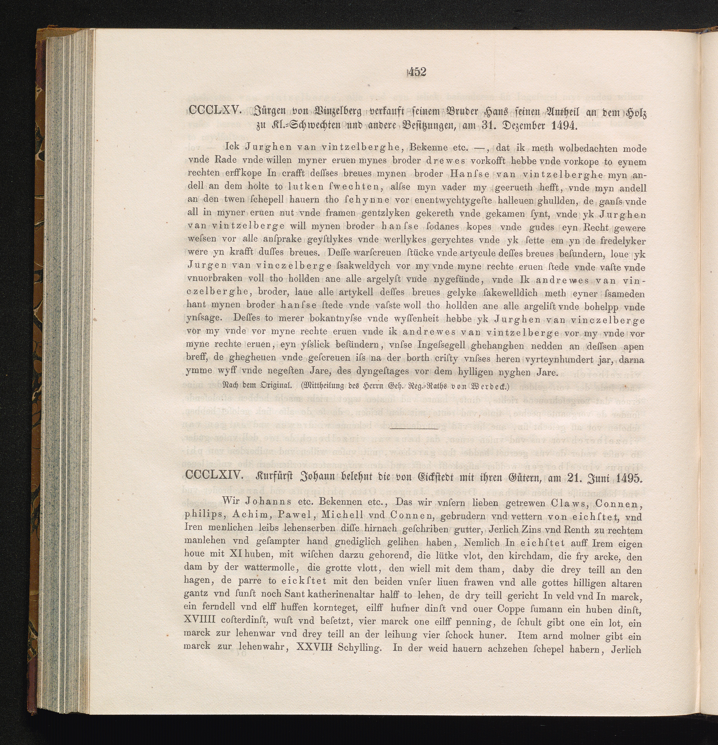 CCCLXV. Jürgen von Vinzelberg verkauft seinem Bruder Hans seinen Antheil an dem Holz[...]