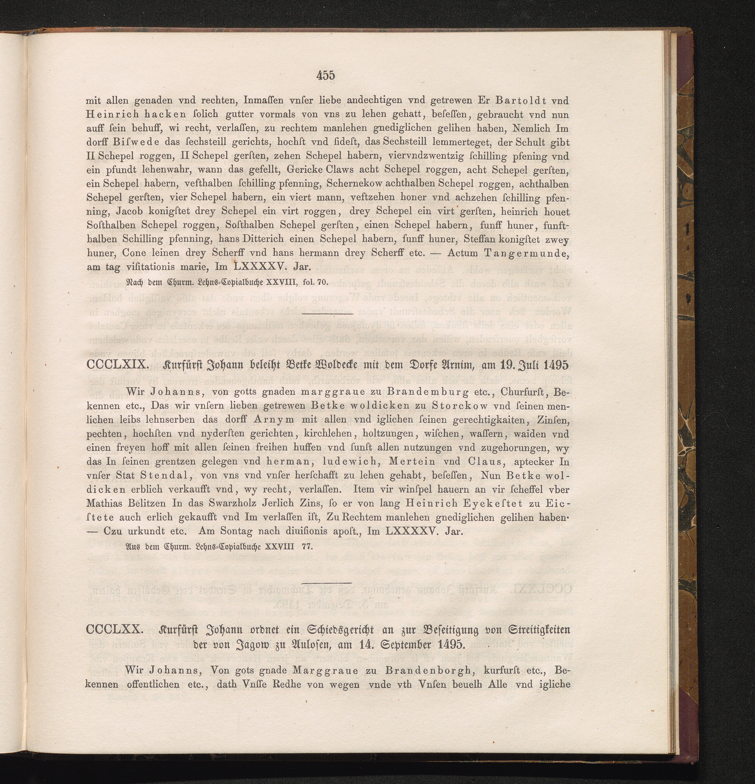 CCCLXIX. Kurfürst Johann beleiht Betke Woldecke mit dem Dorfe Arnim, am 19. Juli[...]