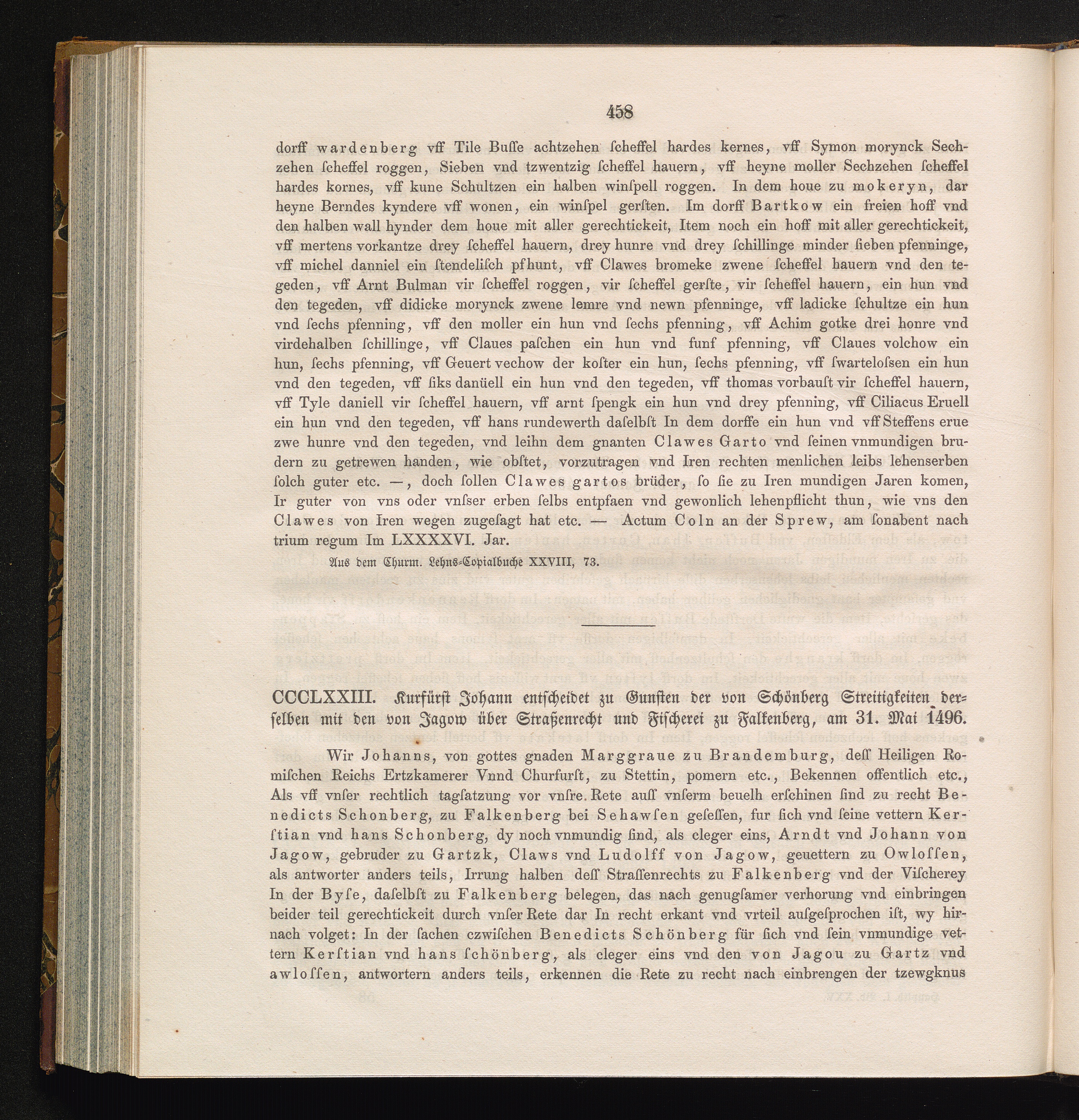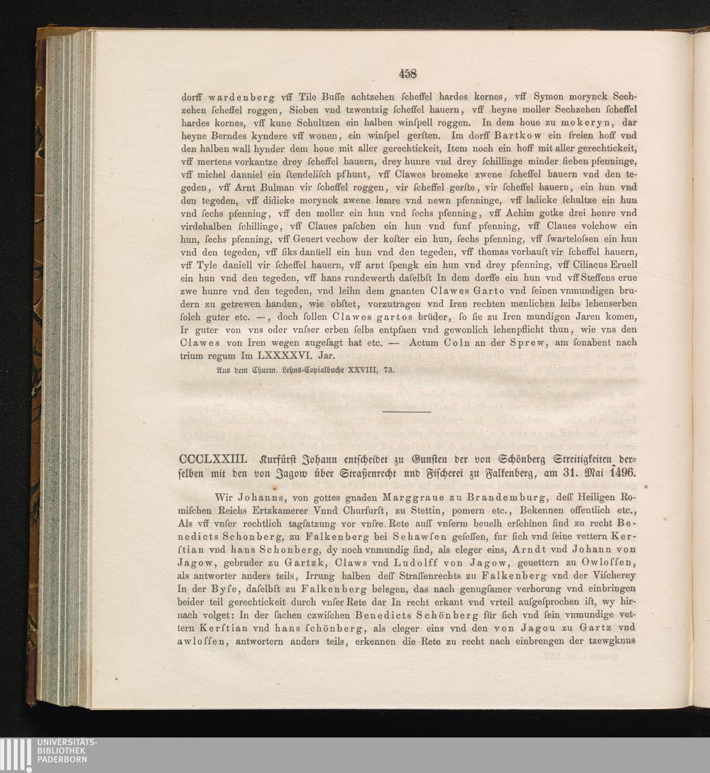 CCCLXXIII. Kurfürst Johann entscheidet zu Gunsten der von Schönberg Streitigkeiten[...]