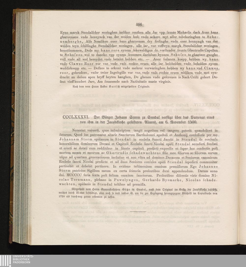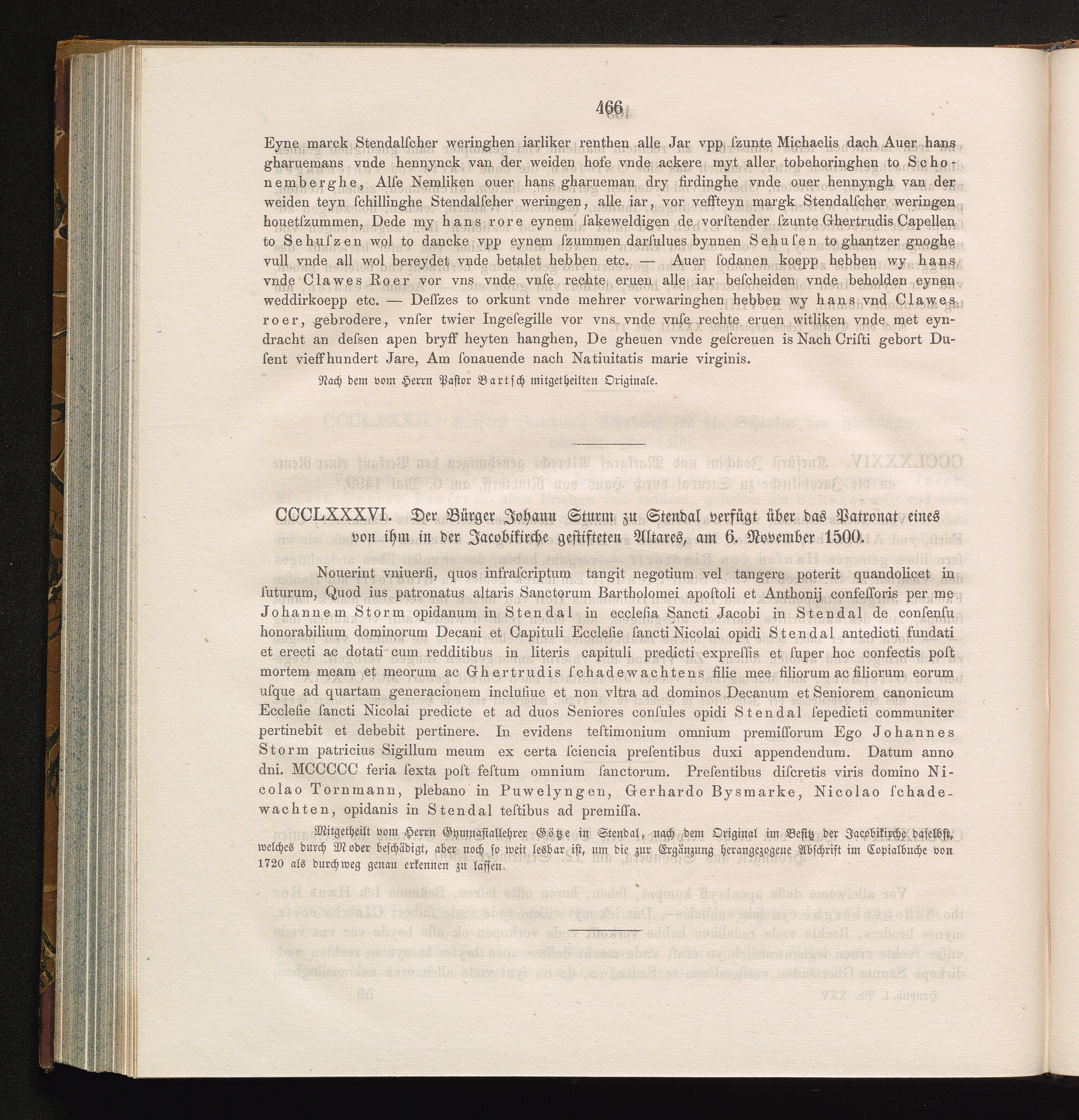 CCCLXXXVI. Der Bürger Johann Sturm zu Stendal verfügt über das Patronat eines von[...]