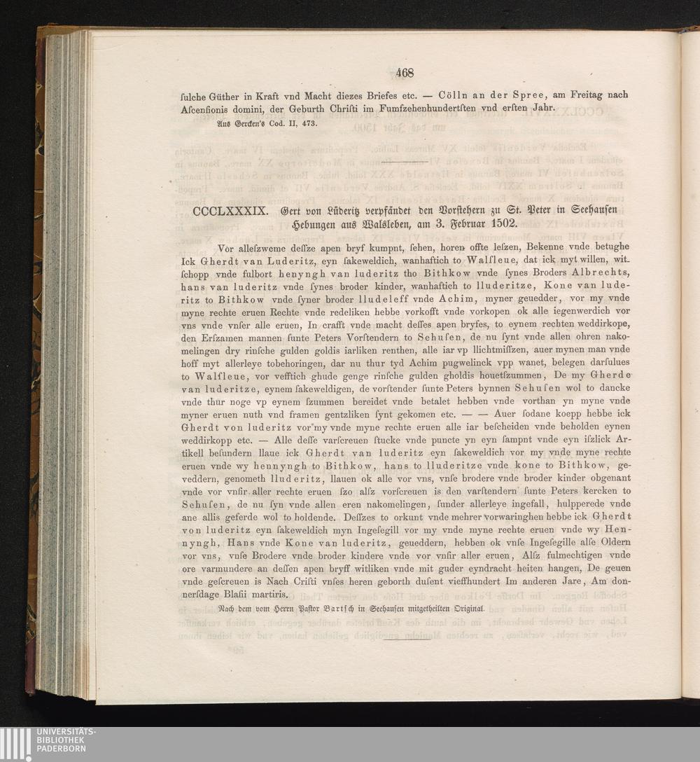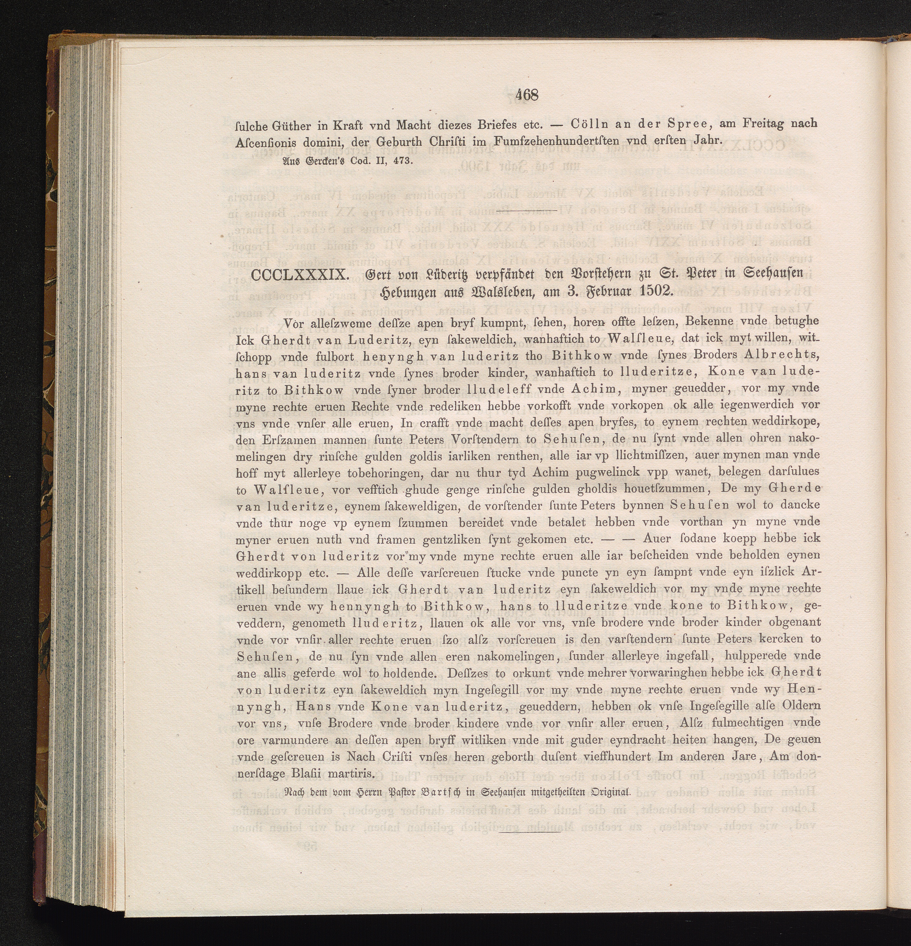 CCCLXXXIX. Gert von Lüderitz verpfändet den Vorstehern zu St. Peter in Seehausen[...]