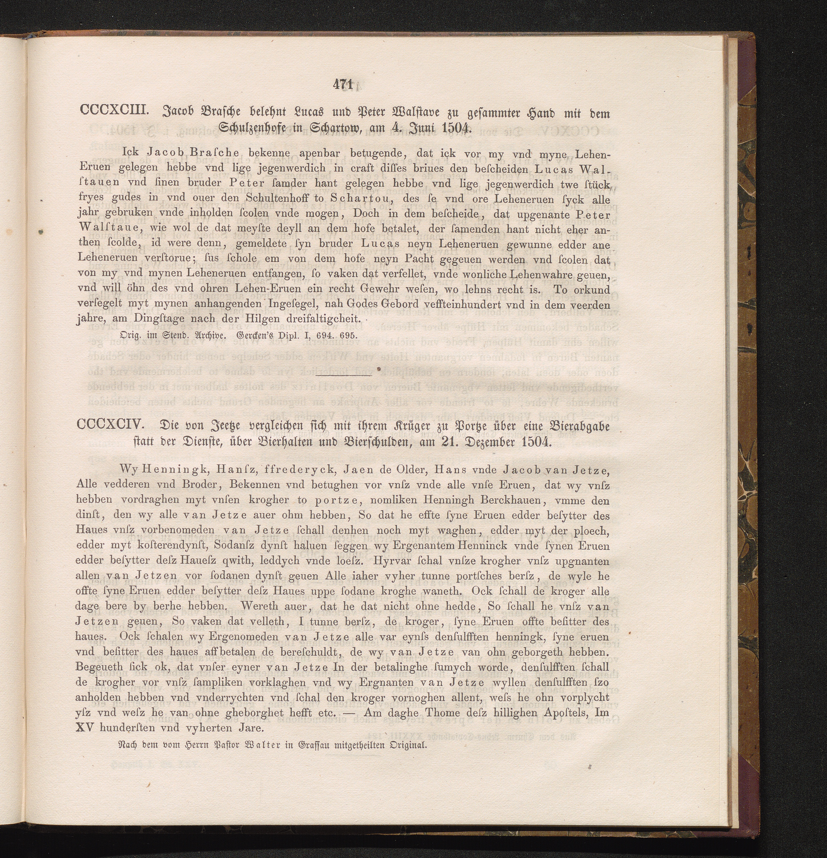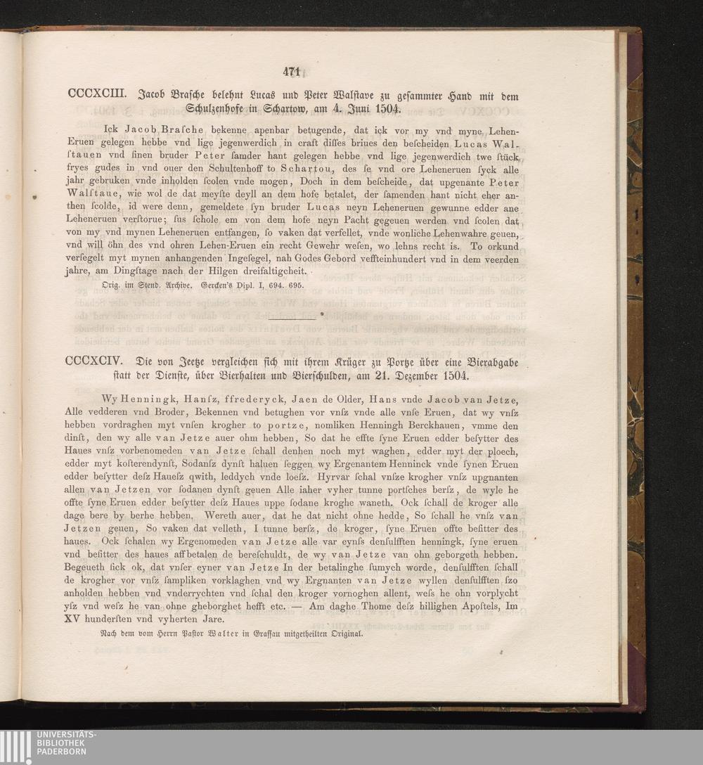 CCCXCIV. Die von Jeetze vergleichen sich mit ihrem Krüger zu Portze über eine Bierabgabe[...]