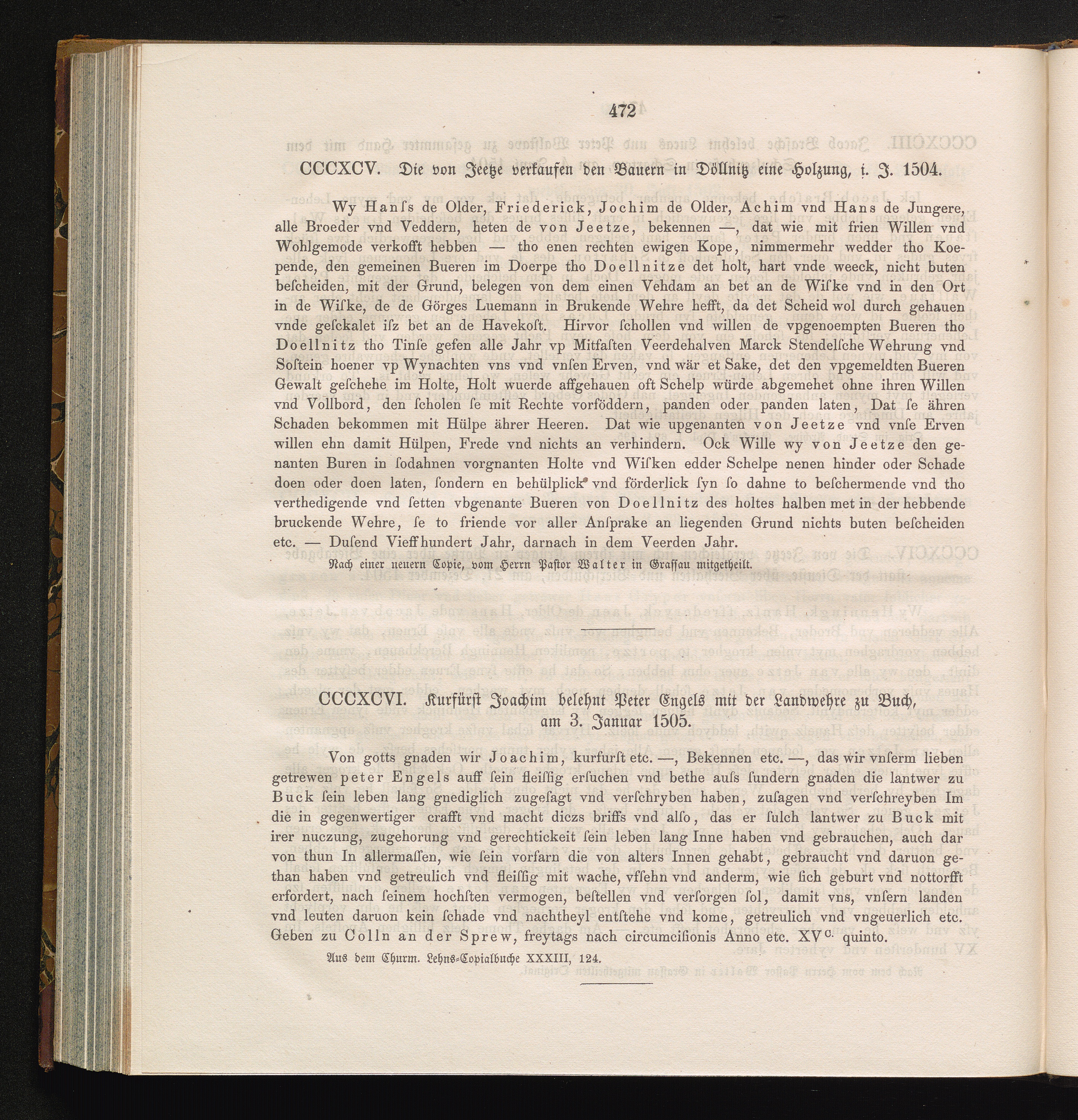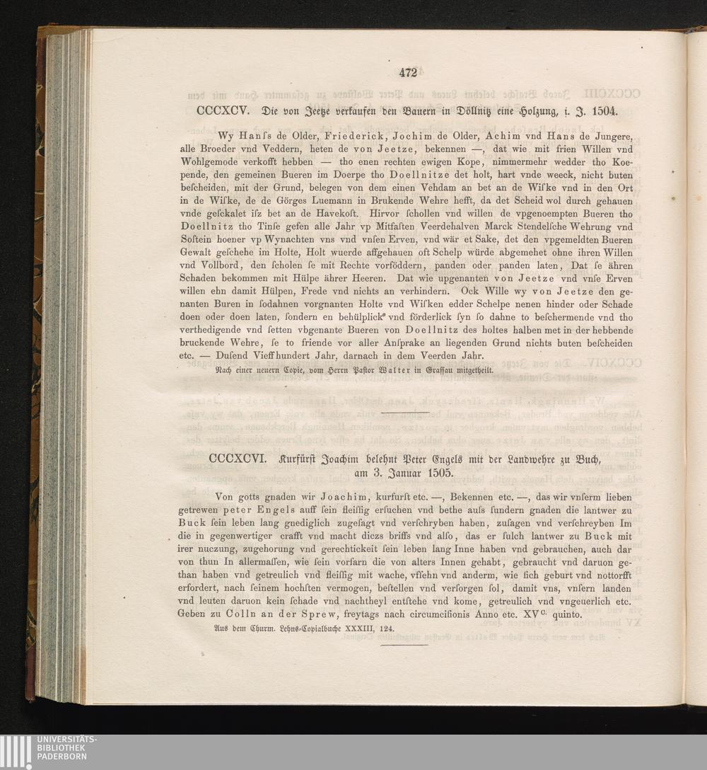 CCCXCV. Die von Jeetze verkaufen den Bauern in Döllnitz eine Holzung, i. J. 1504[...]