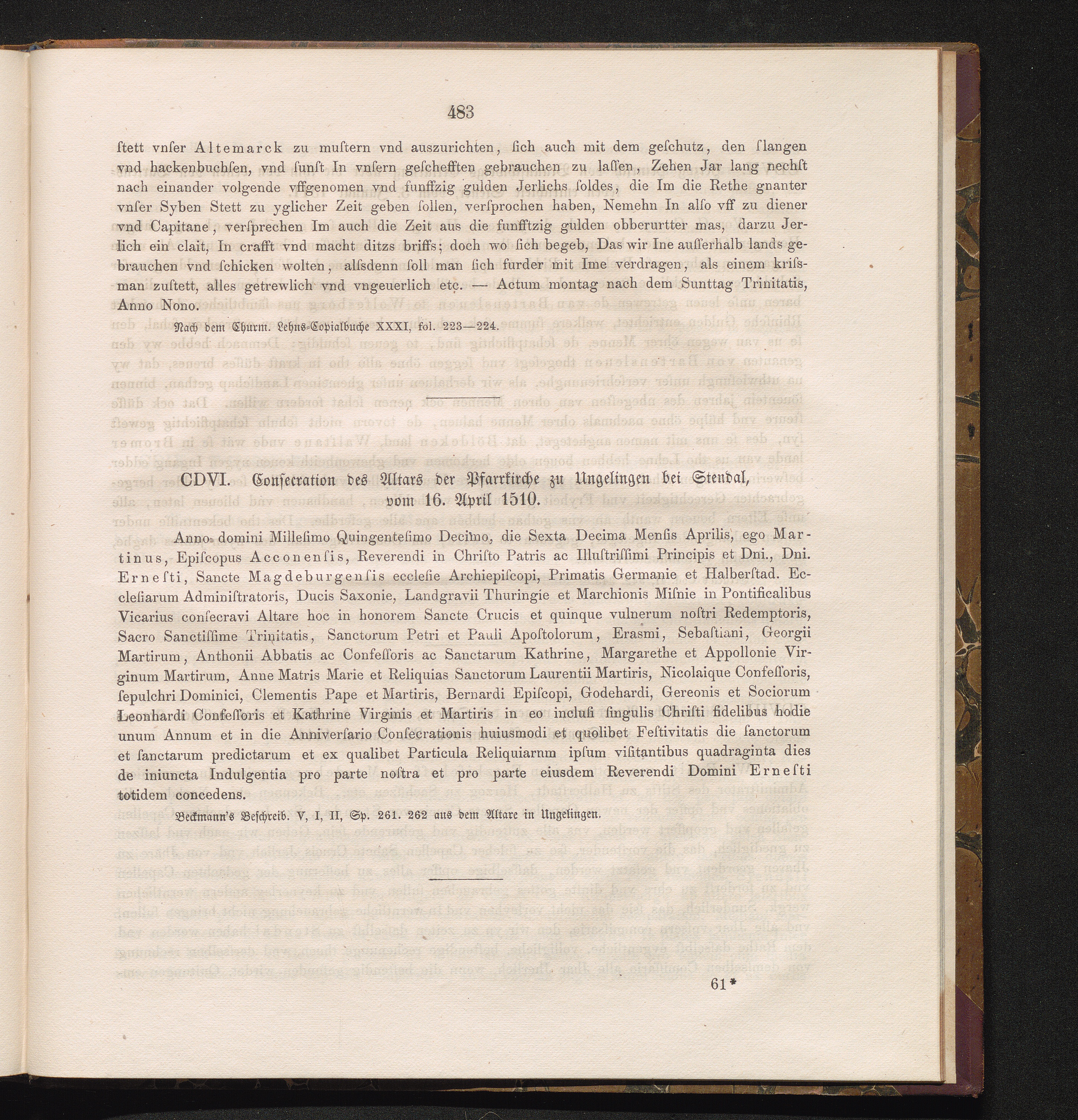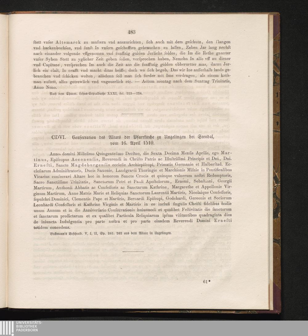 CDVI. Consecration des Altars der Pfarrkirche zu Ungelingen bei Stendal, vom 16.[...]