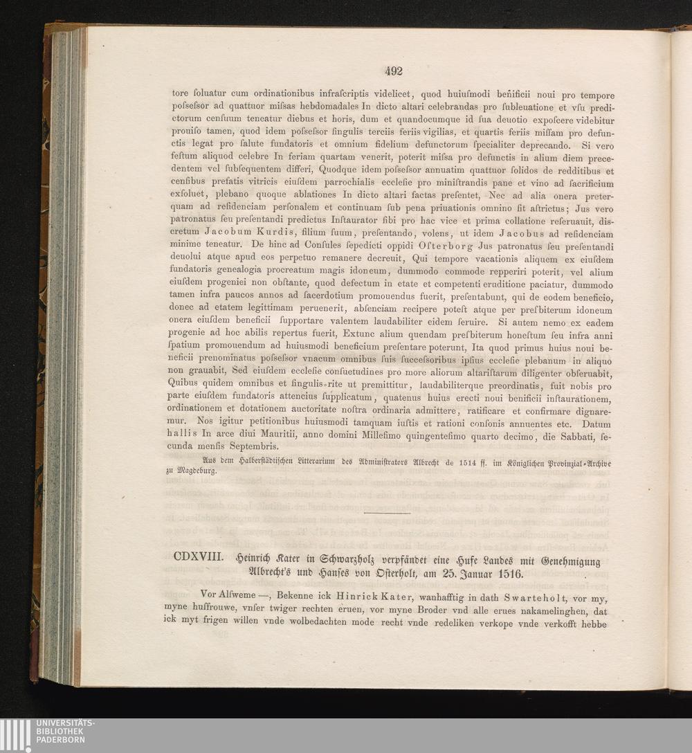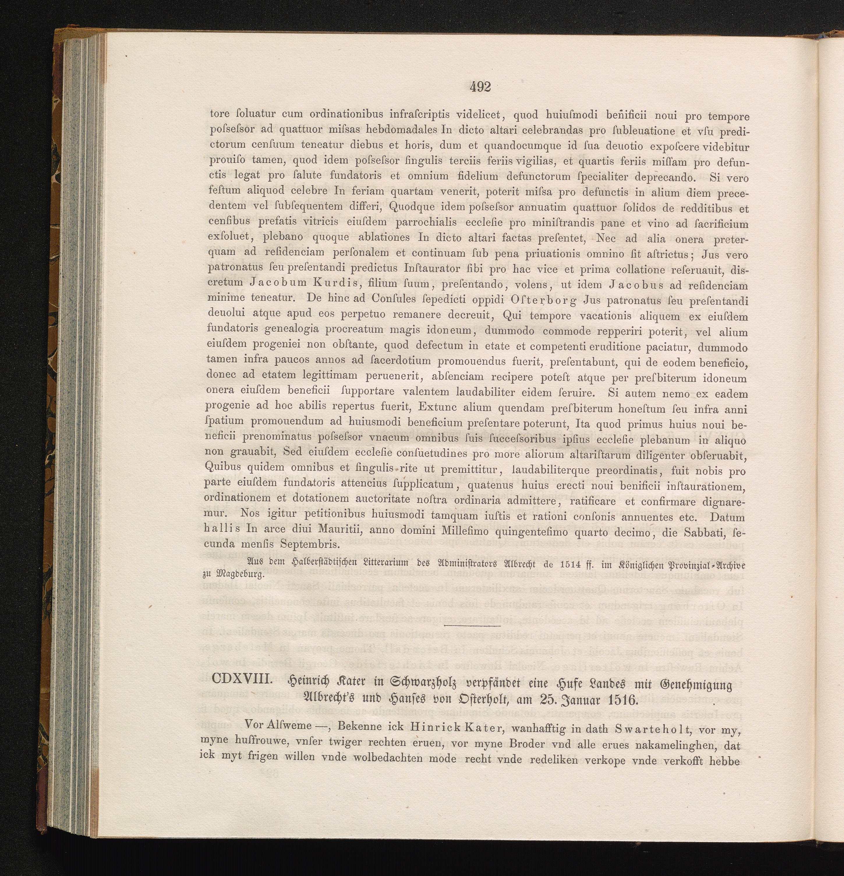 CDXVIII. Heinrich Kater in Schwarzholz verpfändet eine Hufe Landes mit Genehmigung[...]