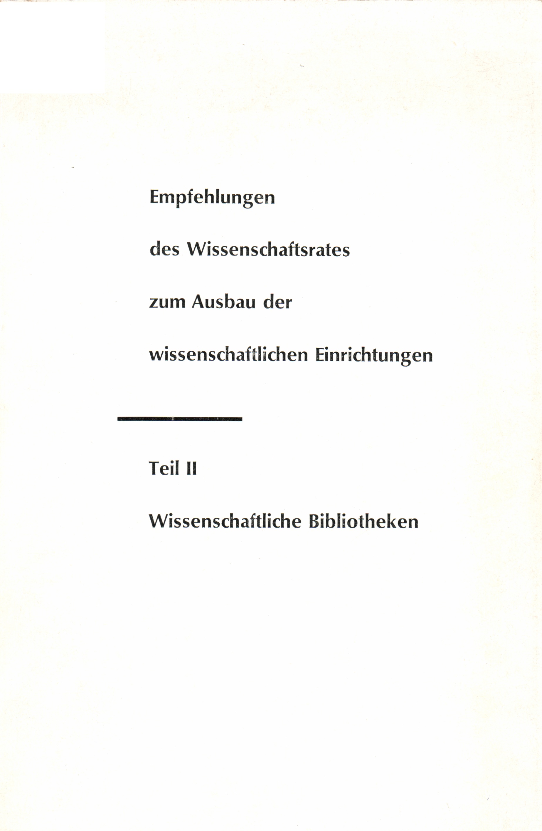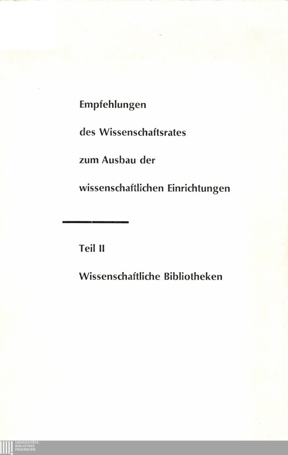 Empfehlungen des Wissenschaftsrates zum Ausbau der wissenschaftlichen Einrichtun[...]