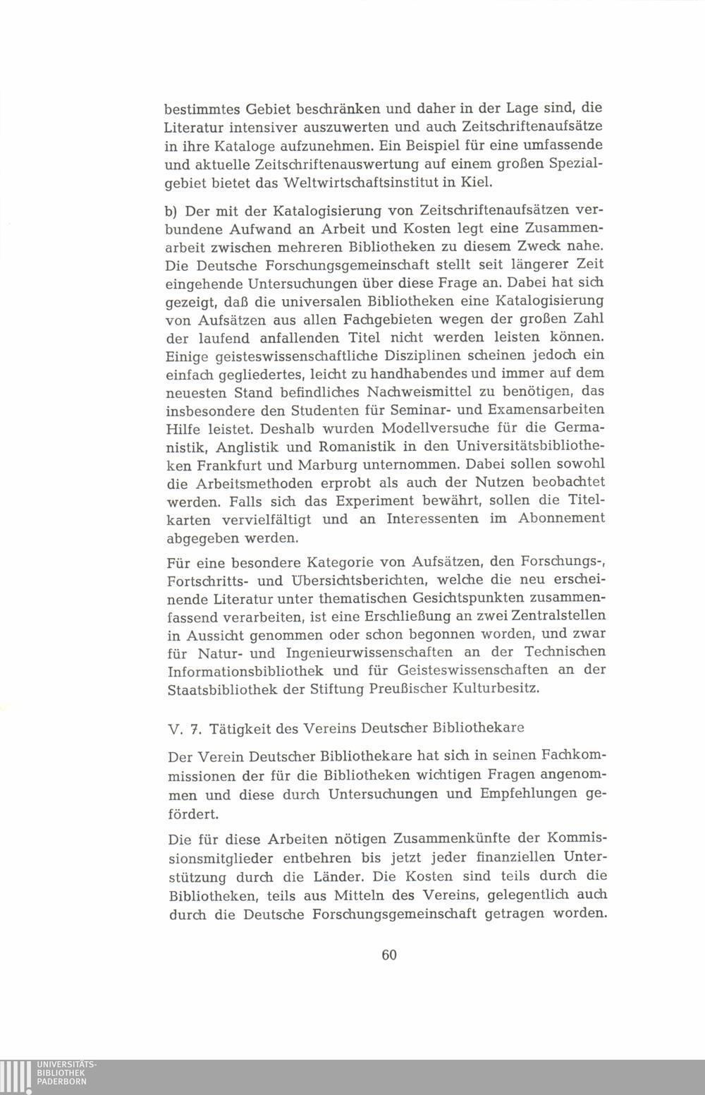 7. Tätigkeit des Vereins Deutscher Bibliothekare