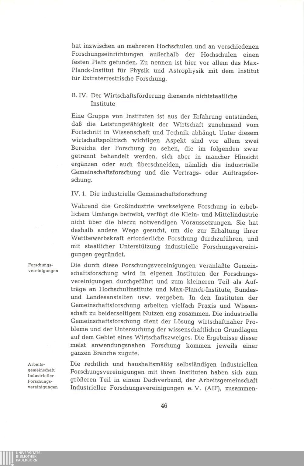 IV. Der Wirtschaftsförderung dienende nichtstaatliche Institute