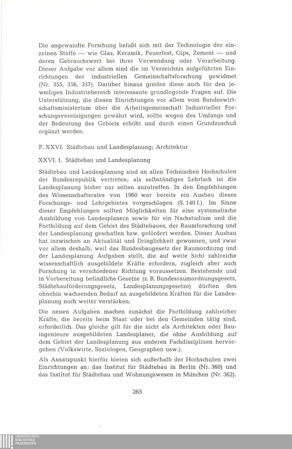 XXVI. Städtebau und Landesplanung, Architektur