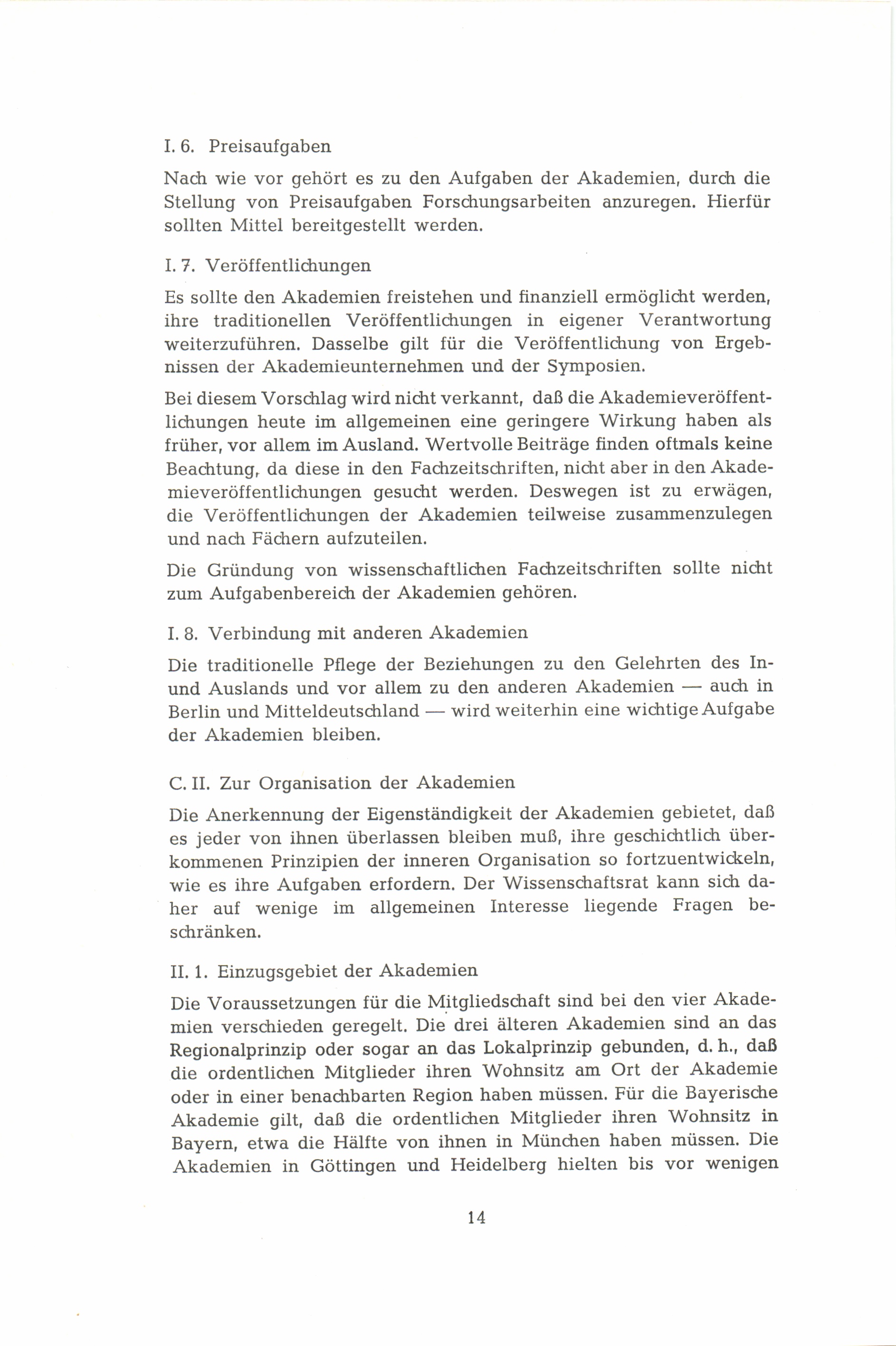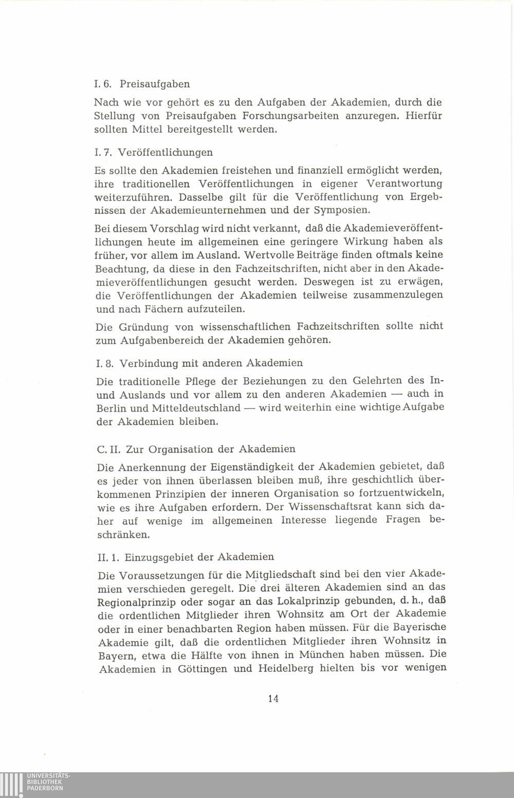 II. Zur Organisation der Akademien