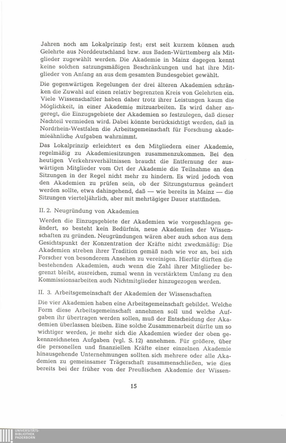 II. Zur Organisation der Akademien