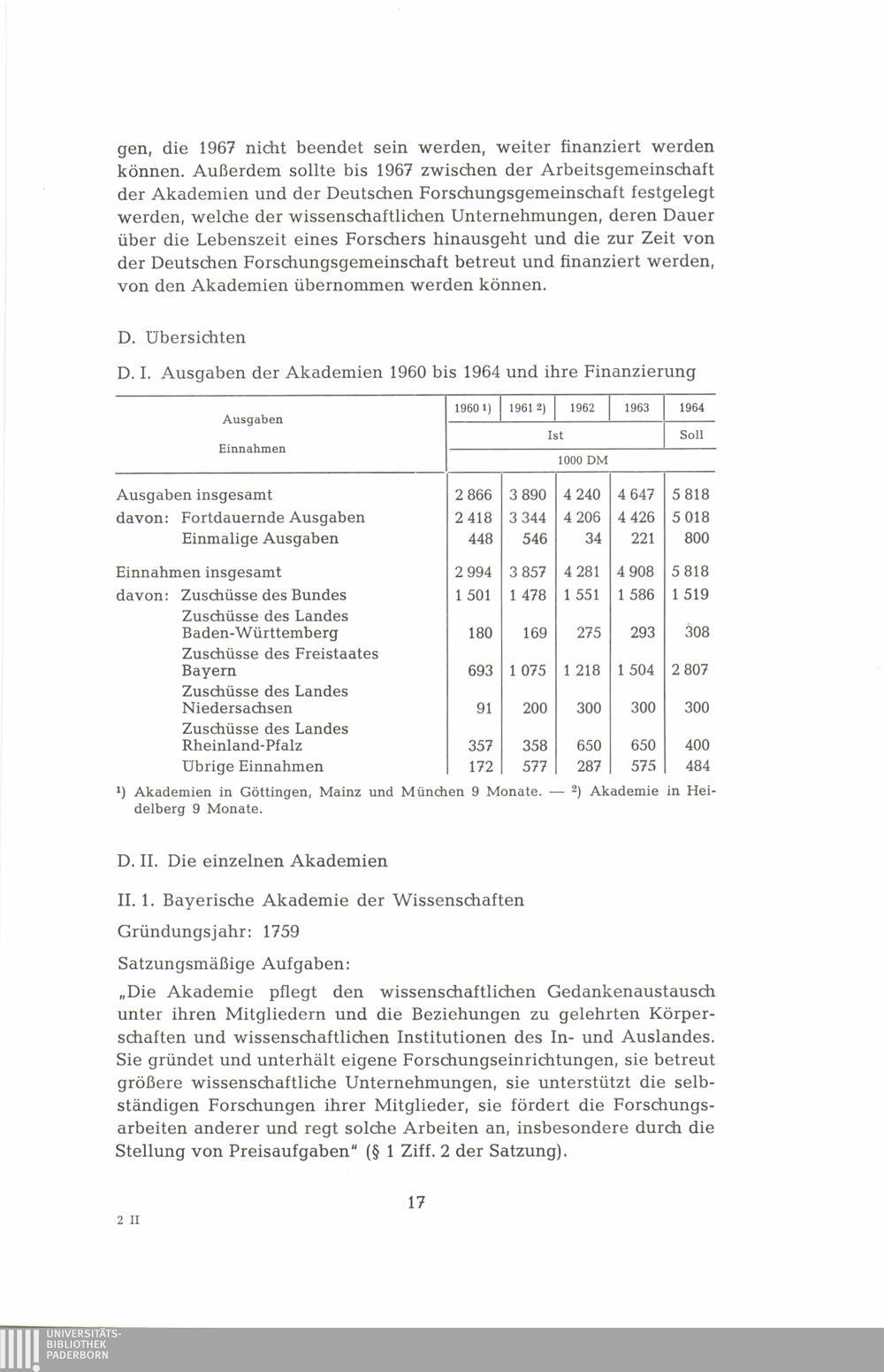 II. Die einzelnen Akademien