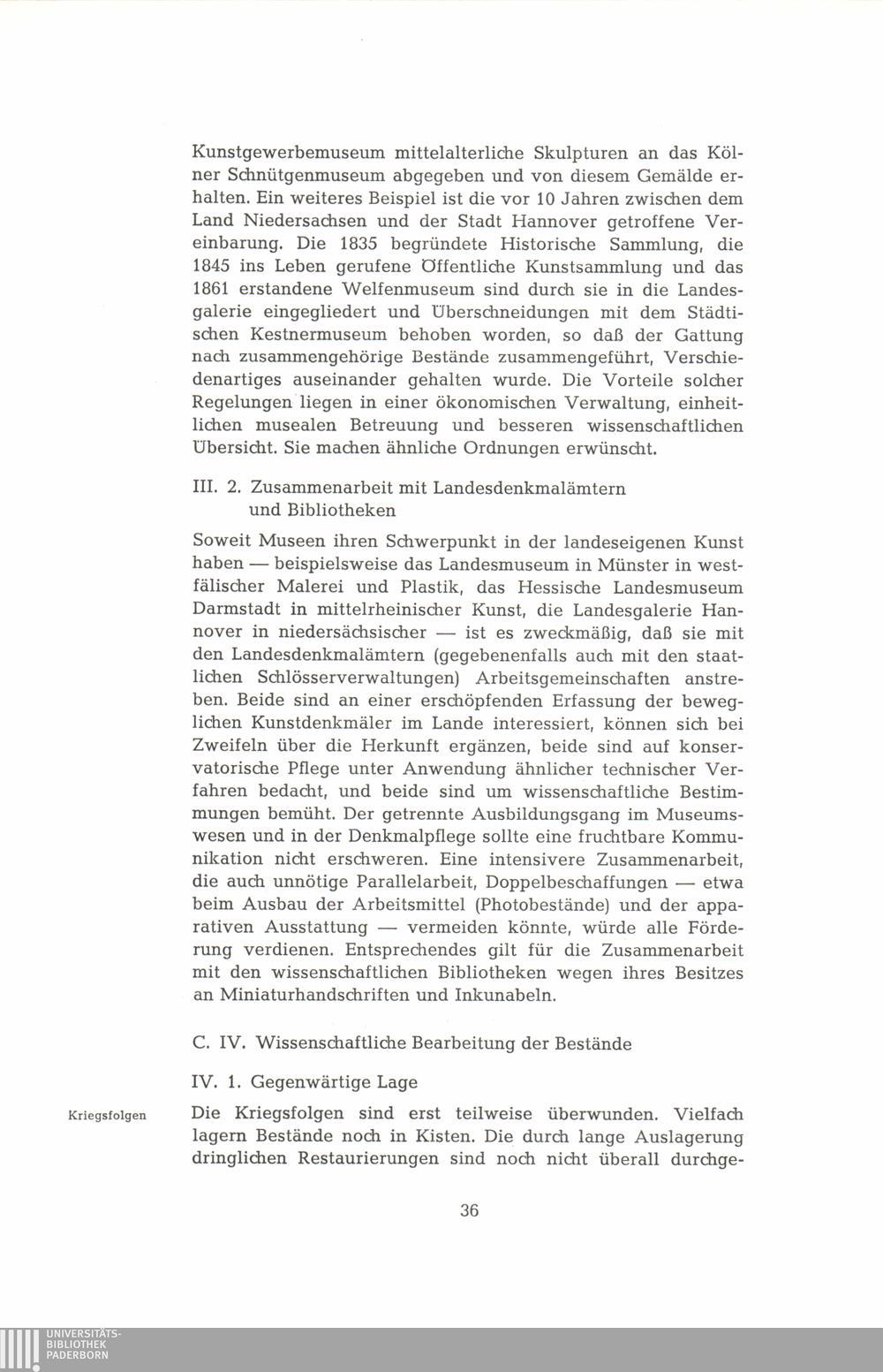 IV. Wissenschaftliche Bearbeitung der Bestände