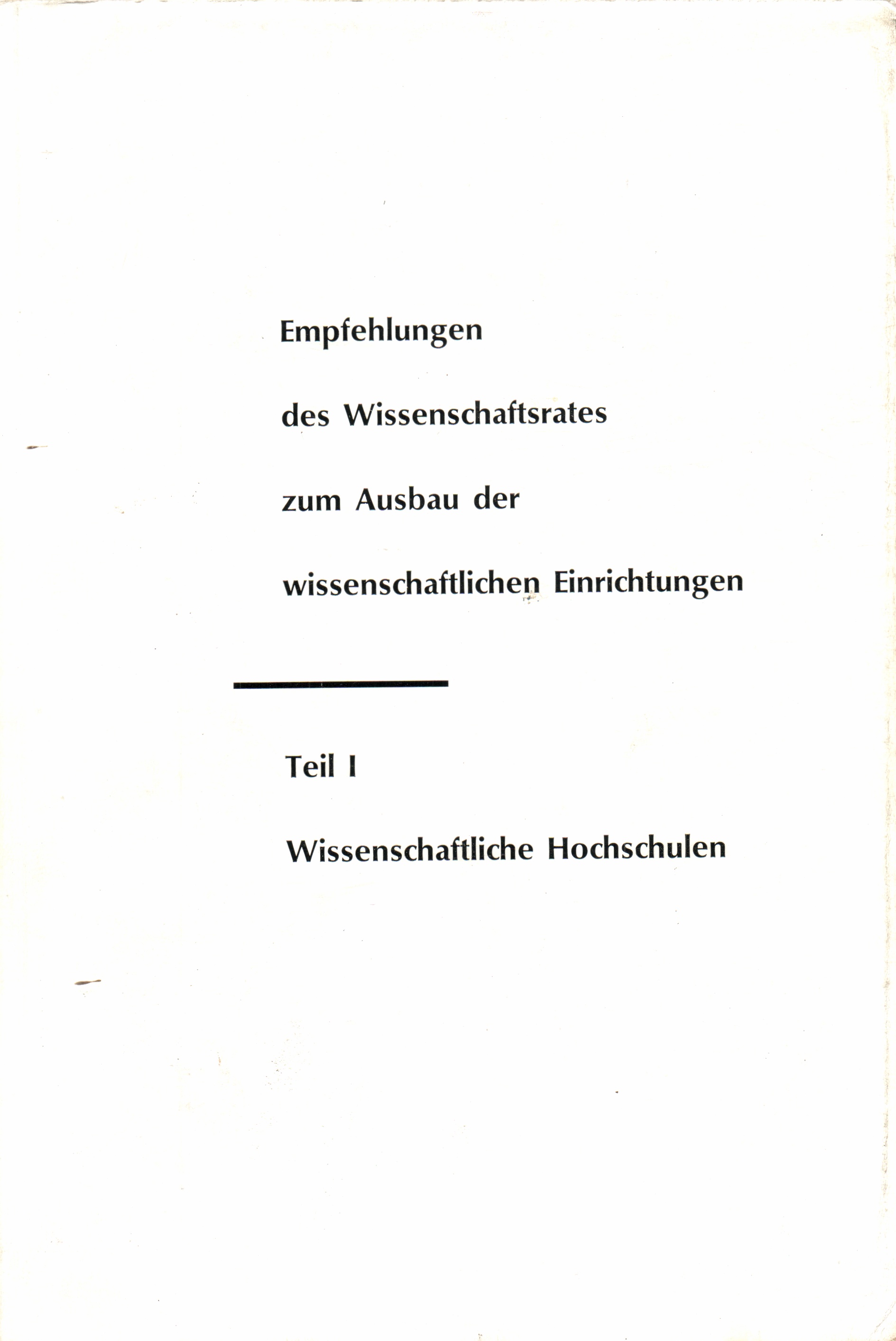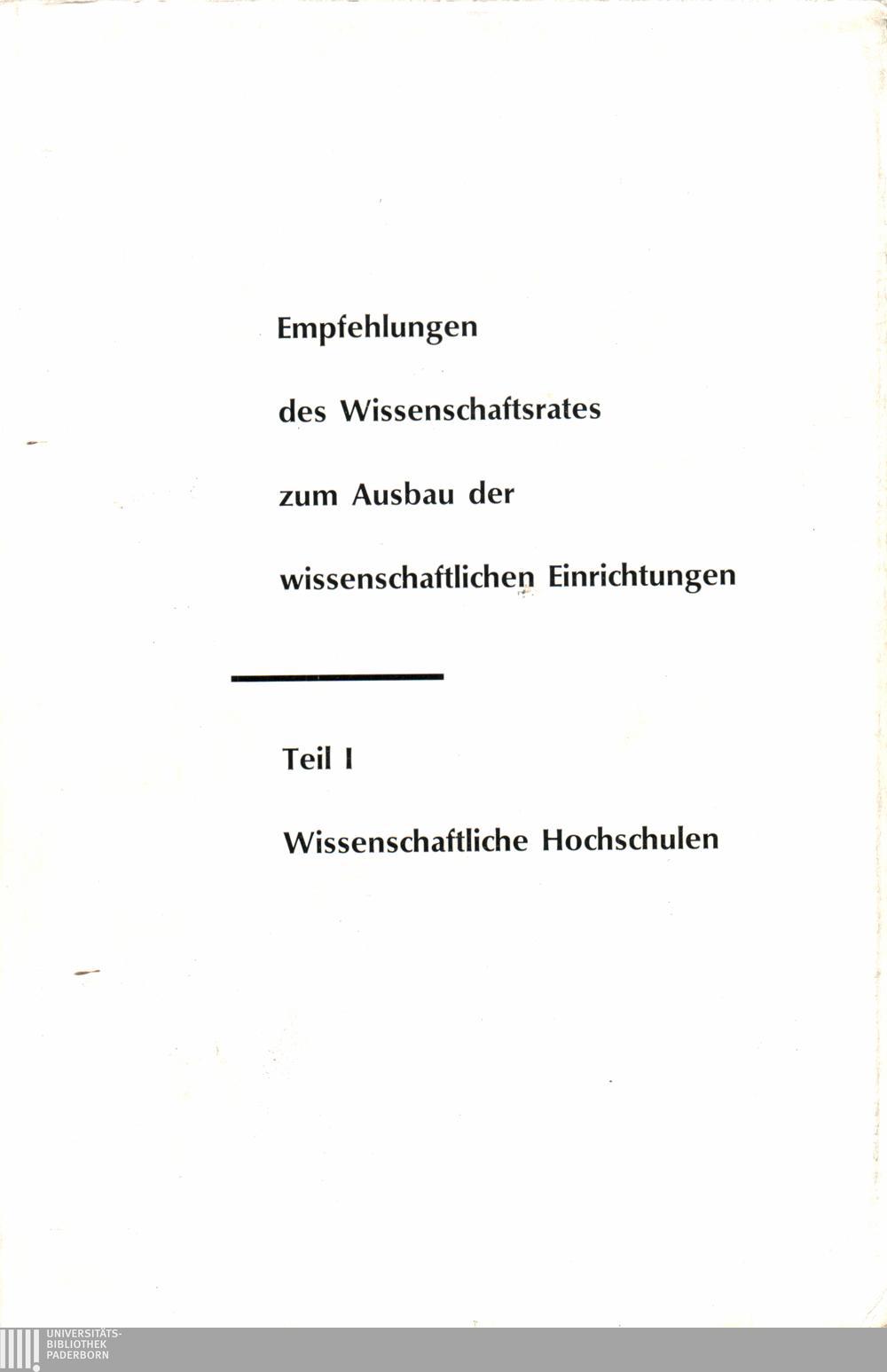 Empfehlungen des Wissenschaftsrates zum Ausbau der wissenschaftlichen Einrichtun[...]