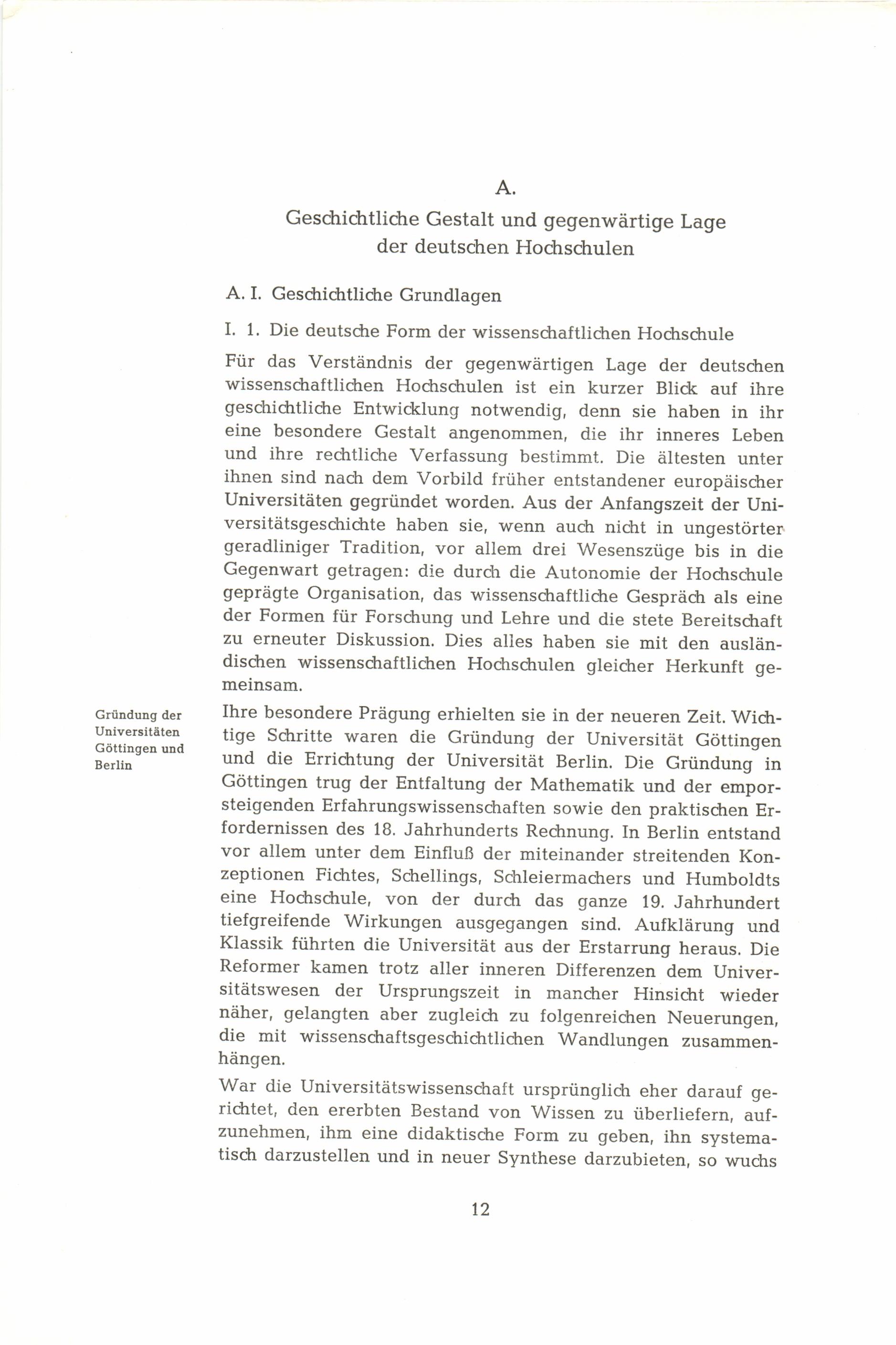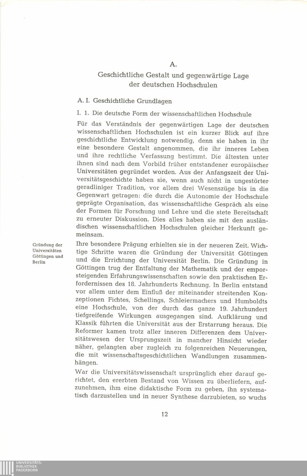 A. Geschichtliche Gestalt und gegenwärtige Lage der deutschen Hochschulen