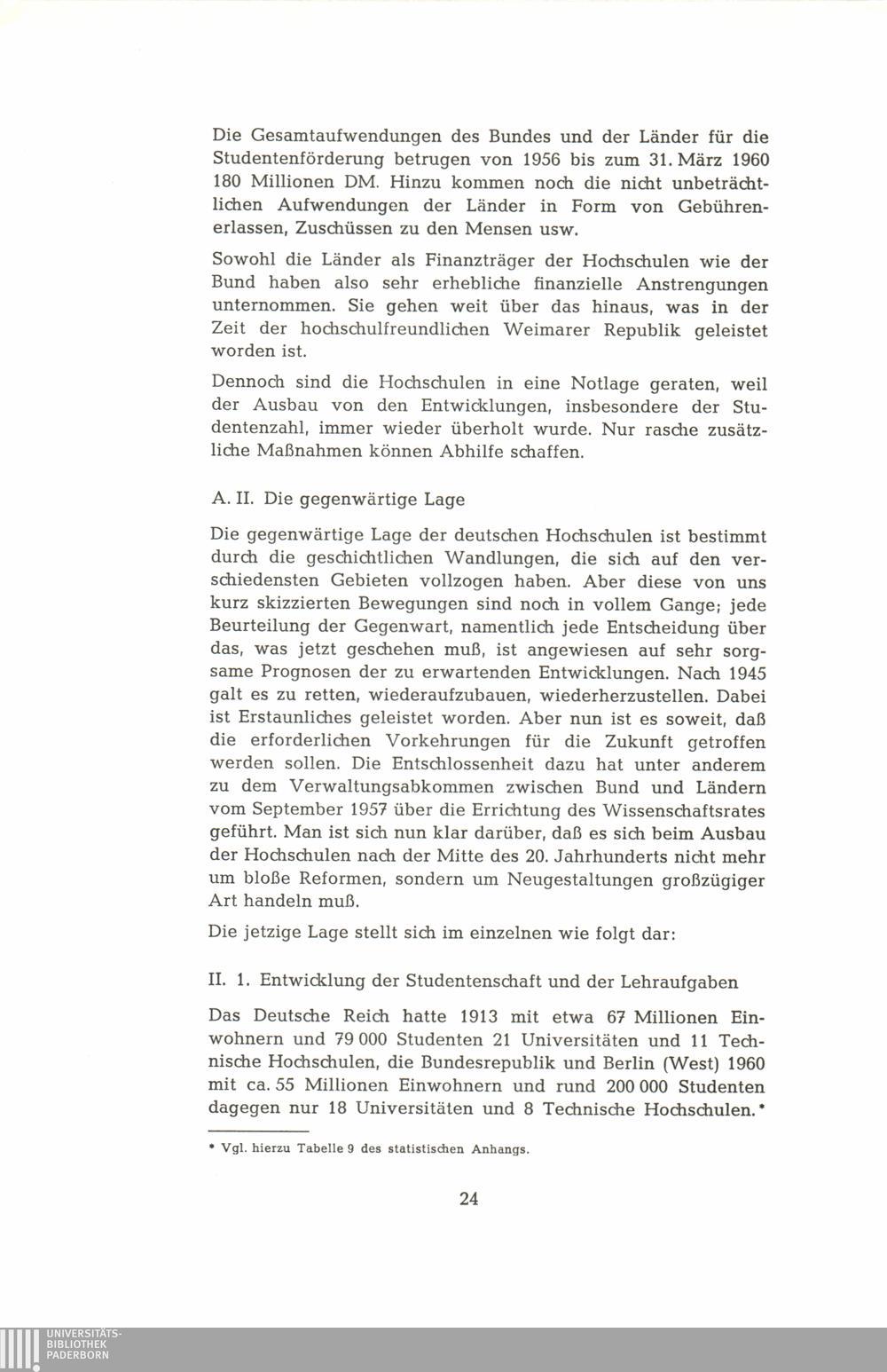 A. Geschichtliche Gestalt und gegenwärtige Lage der deutschen Hochschulen