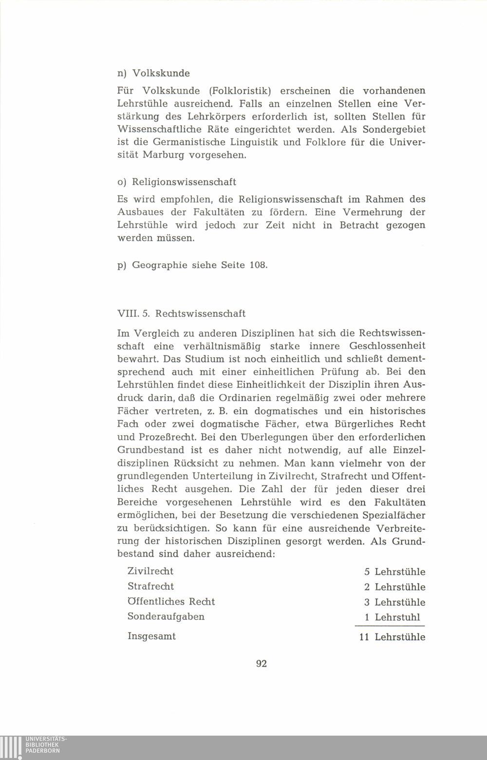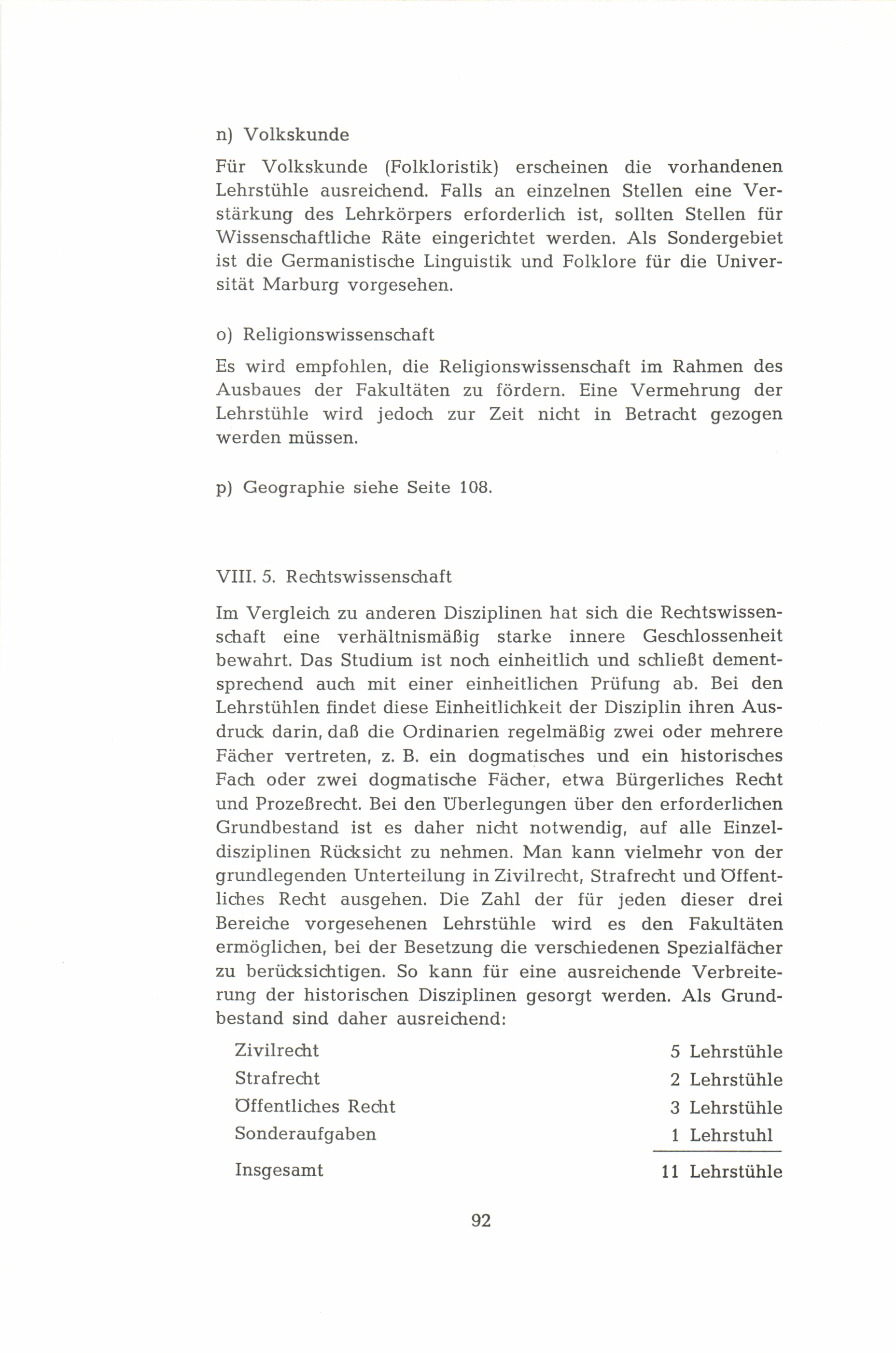 VIII. Empfehlungen für den Ausbau der einzelnen Fakultäten und Fächer