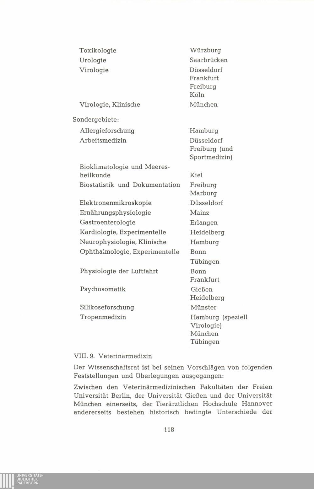 VIII. Empfehlungen für den Ausbau der einzelnen Fakultäten und Fächer