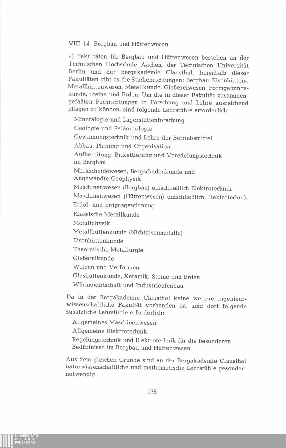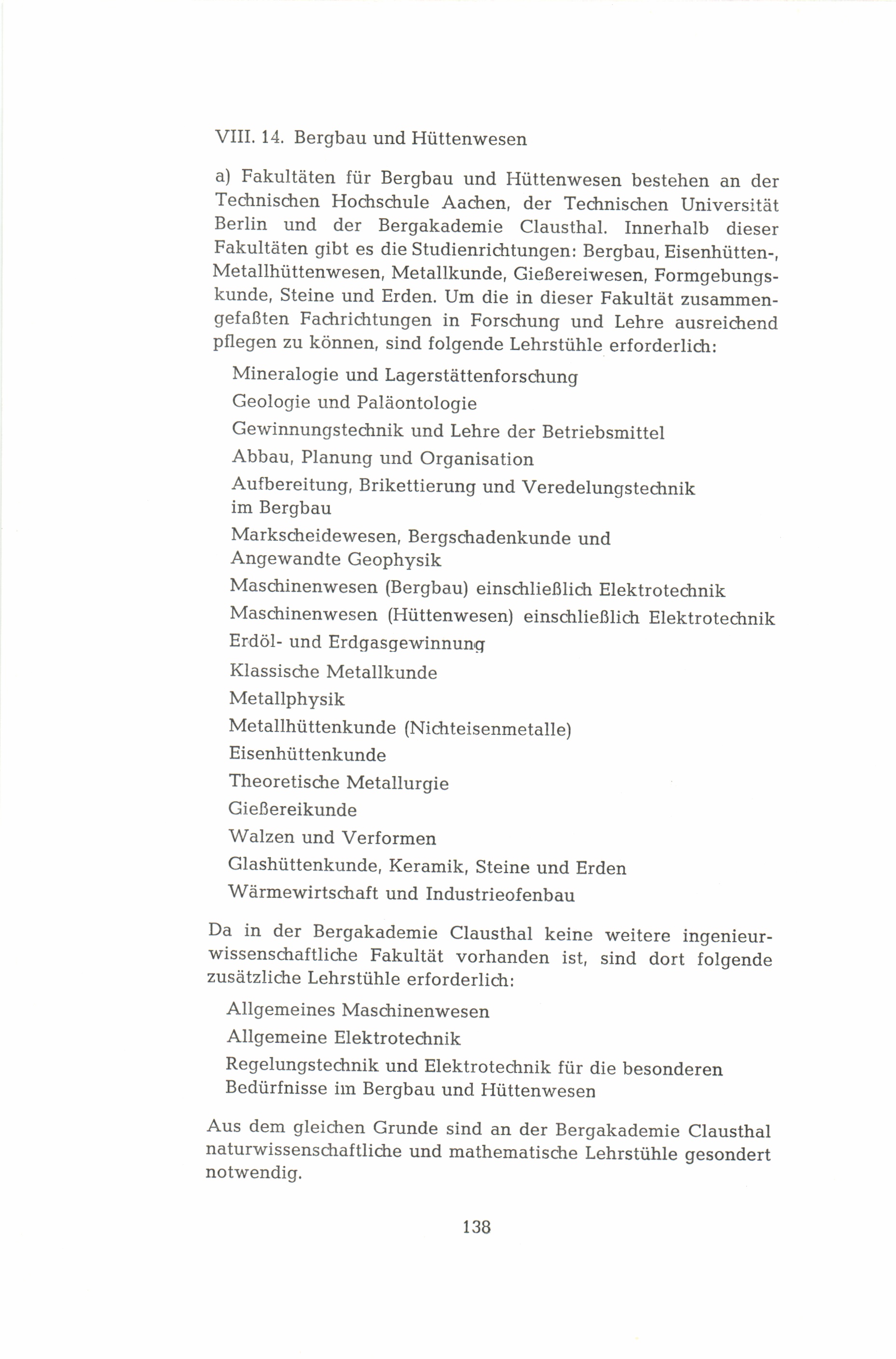 VIII. Empfehlungen für den Ausbau der einzelnen Fakultäten und Fächer
