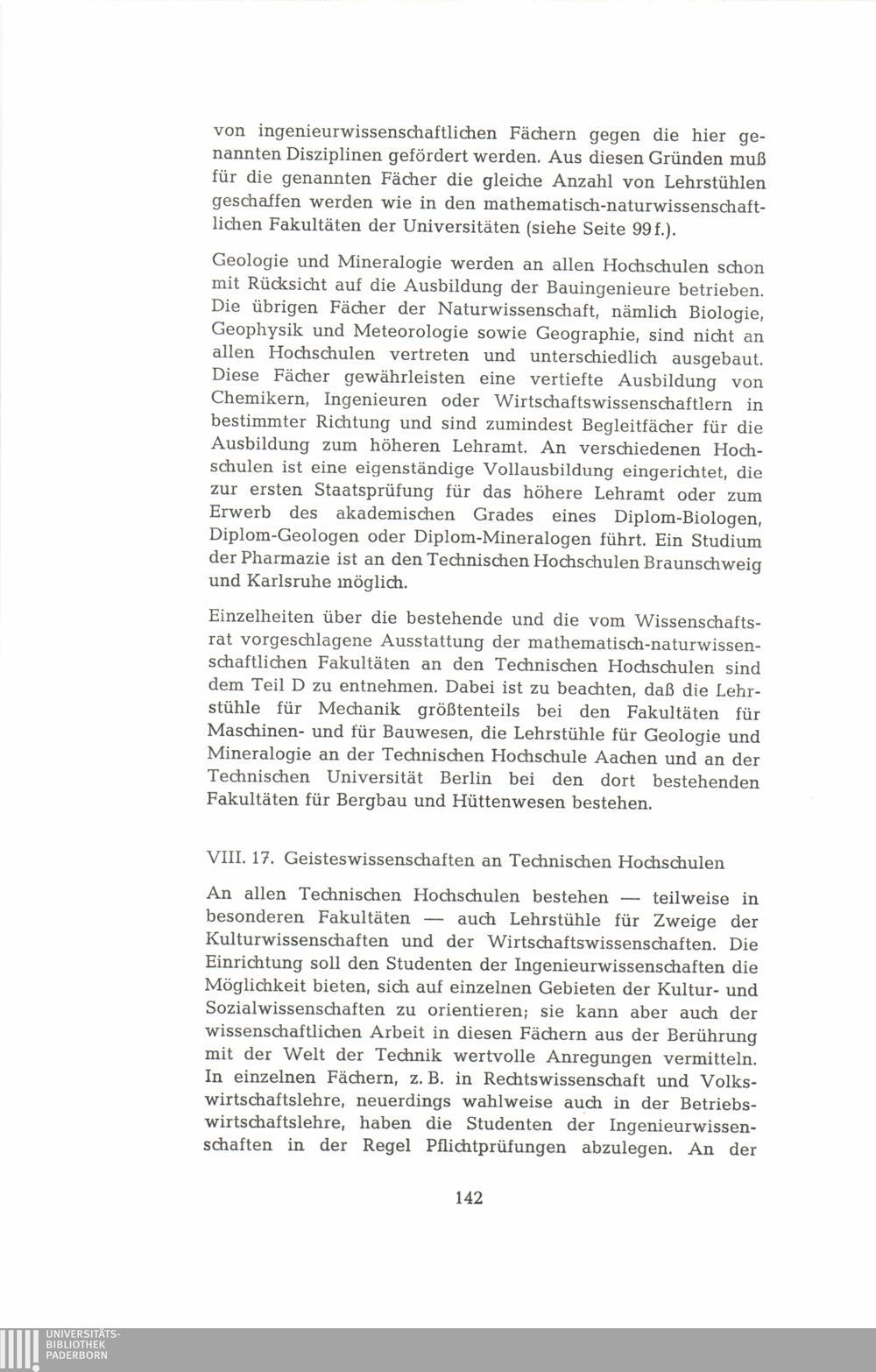 VIII. Empfehlungen für den Ausbau der einzelnen Fakultäten und Fächer