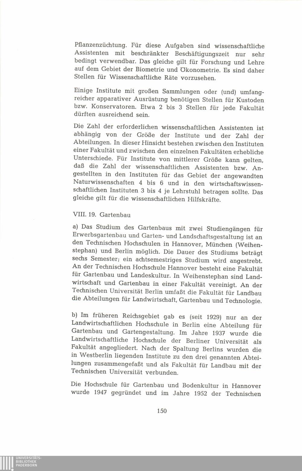 VIII. Empfehlungen für den Ausbau der einzelnen Fakultäten und Fächer